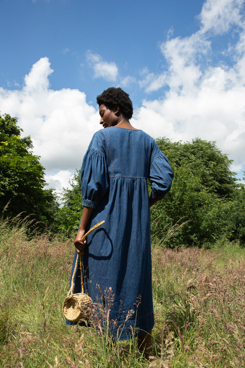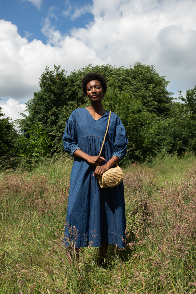 Crafted from beautiful organic cotton denim, this dress can be paired with simple accessories for daytime, whilst the statement shape can also be dressed up for an evening.