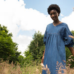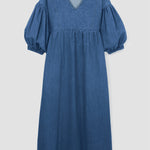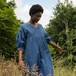 Harumi-Leigh Organic Cotton Denim Dress in Mid Blue