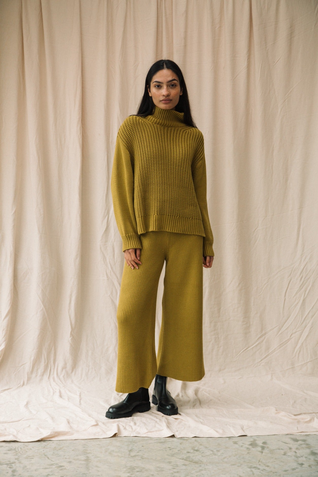 Taka Organic Cotton Knitted Trouser in Chartreuse