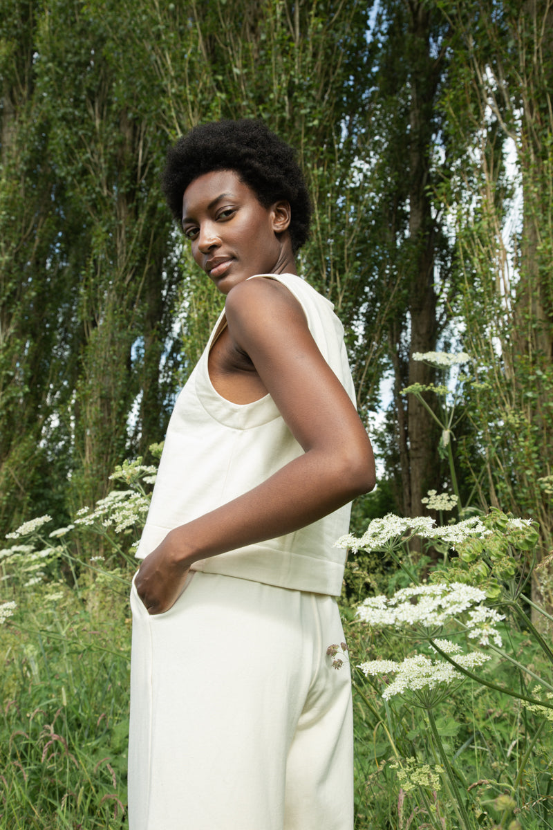 Crafted from our signature Felpe which is brushed inside and out for a luxurious softness, they are styled here with the Whitley vest to form a matching set.