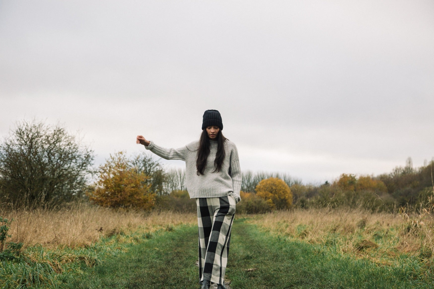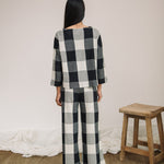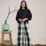 Thorne-Cay Organic Cotton Knitted Check Trouser in Black and Ecru