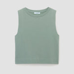 The Whitley is a sleeveless vest crafted from our super-soft brushed cotton Felpe, featuring a ribbed collar, and a cropped, boxy fit.