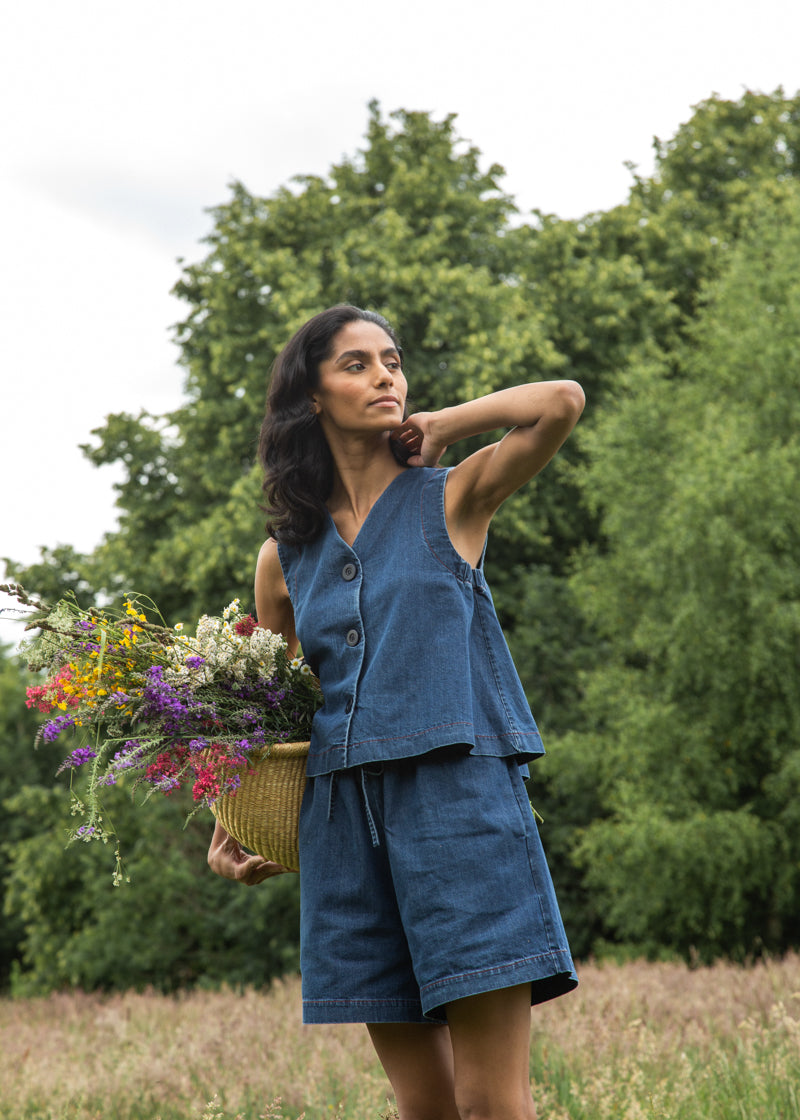 Paola-Leigh Organic Cotton Denim Short in Mid Blue
