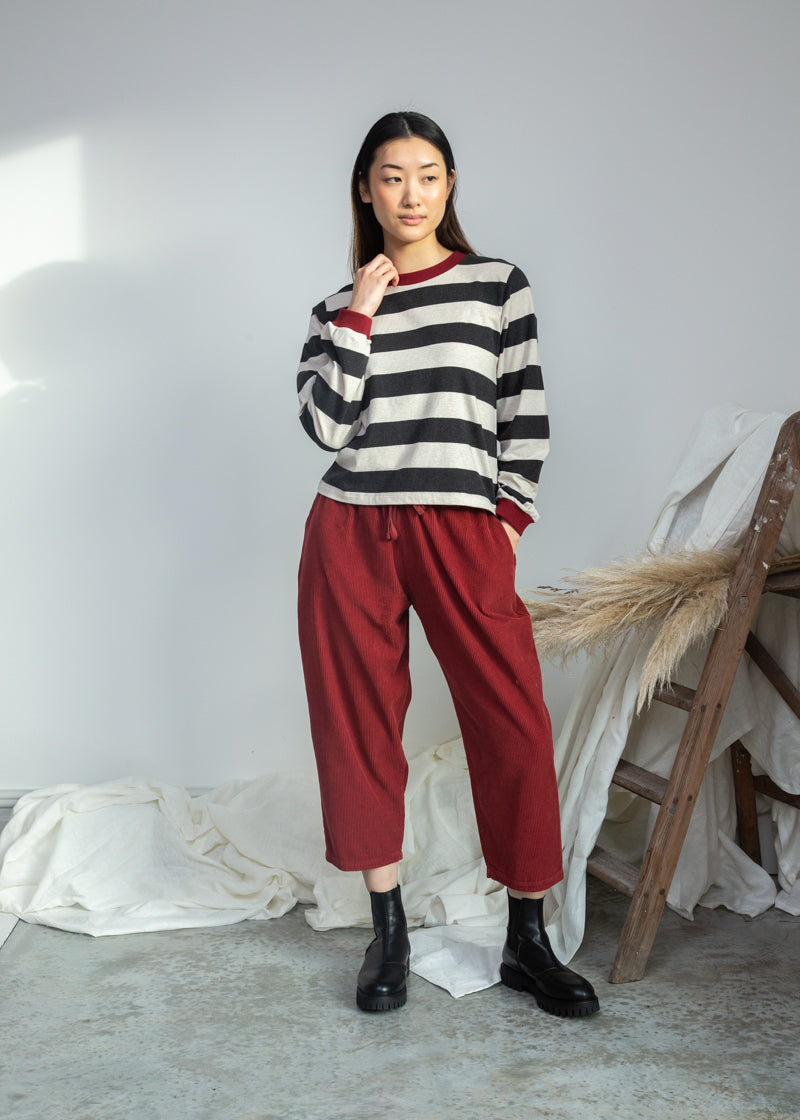 Cedar Organic Cotton Corduroy Trousers in Soft Burgundy