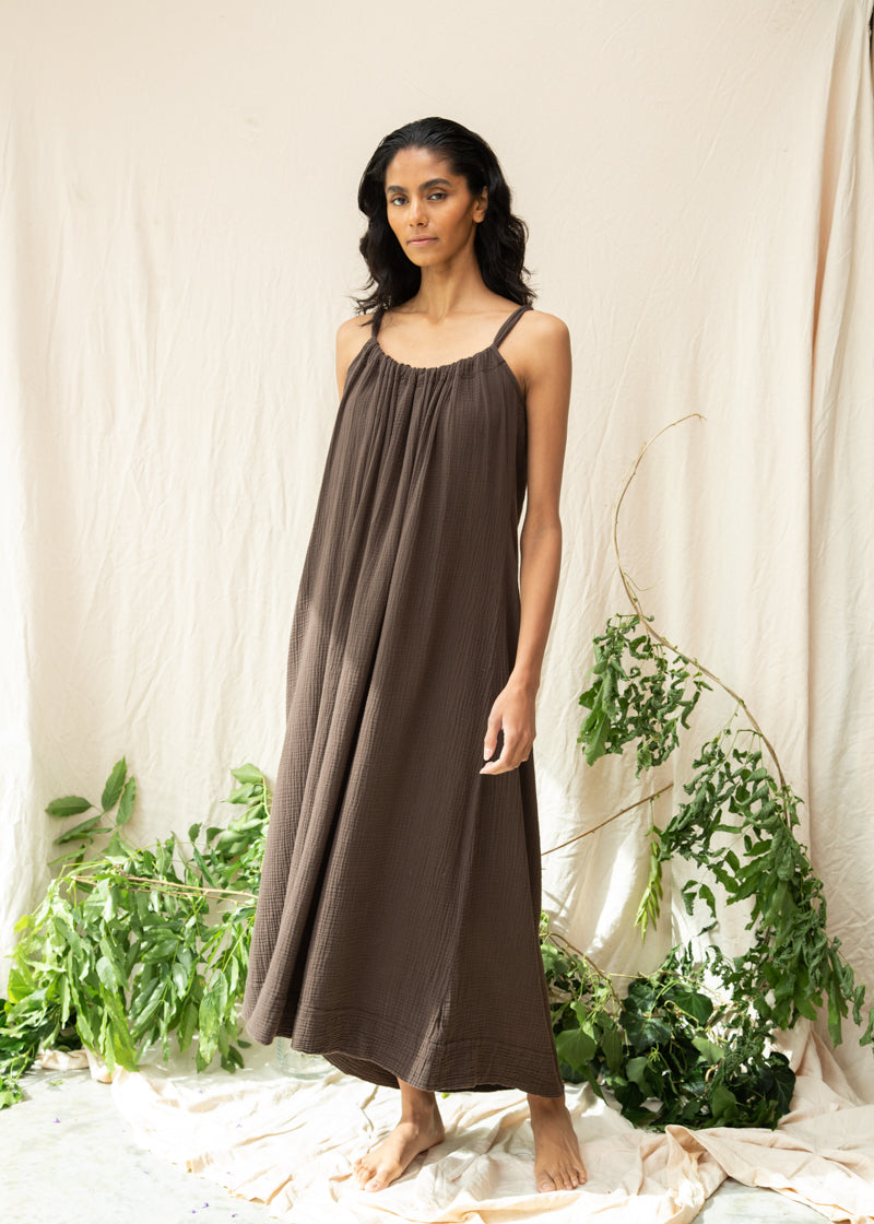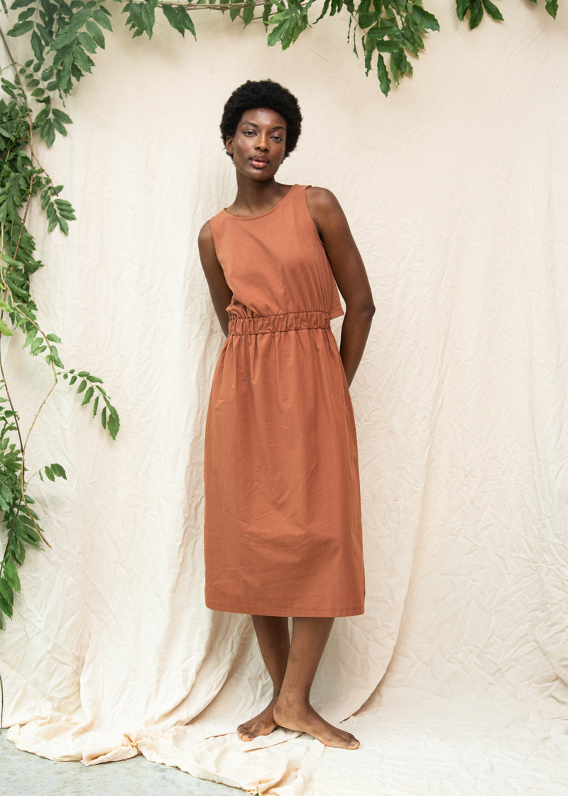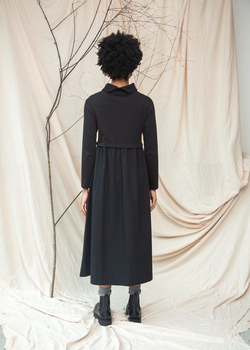 Birch Organic Cotton Jersey and Poplin Dress in Black