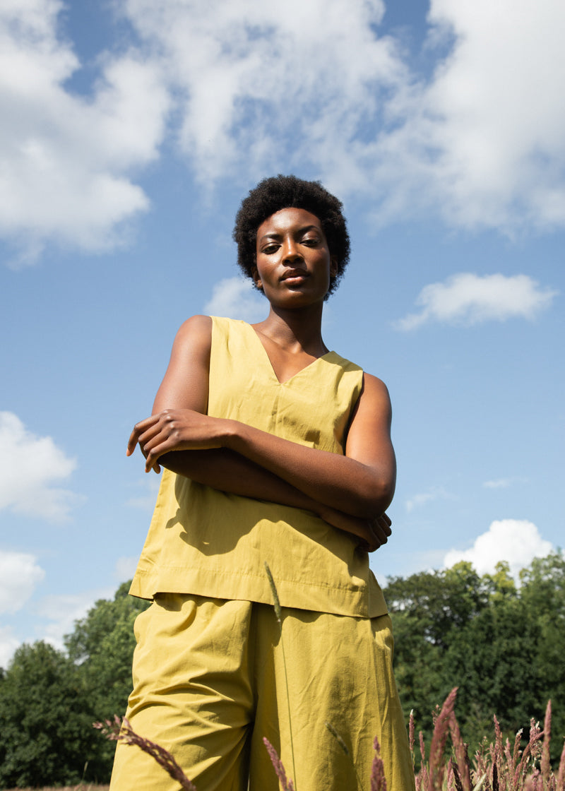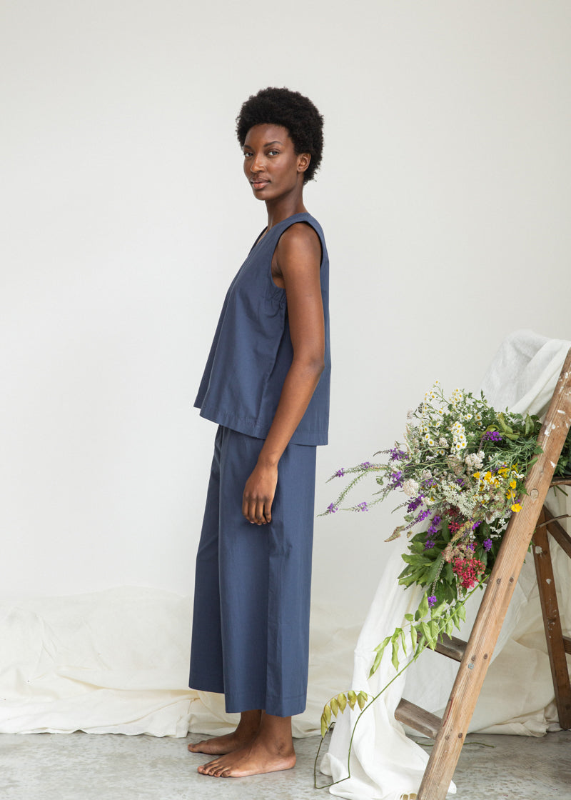 Shay Organic Cotton Jersey and Poplin Top in Pine