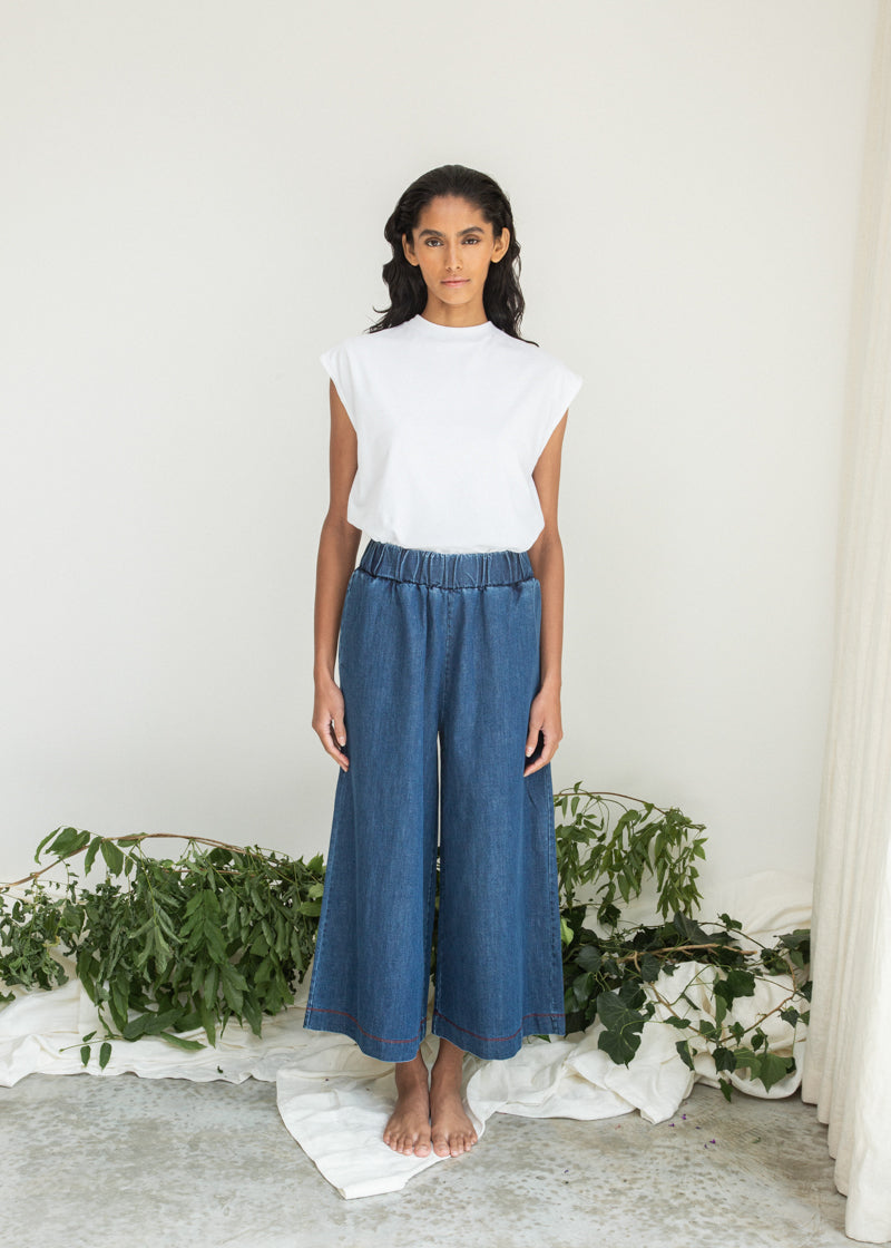Jovie-Leigh Organic Cotton Denim Vest in Mid Blue