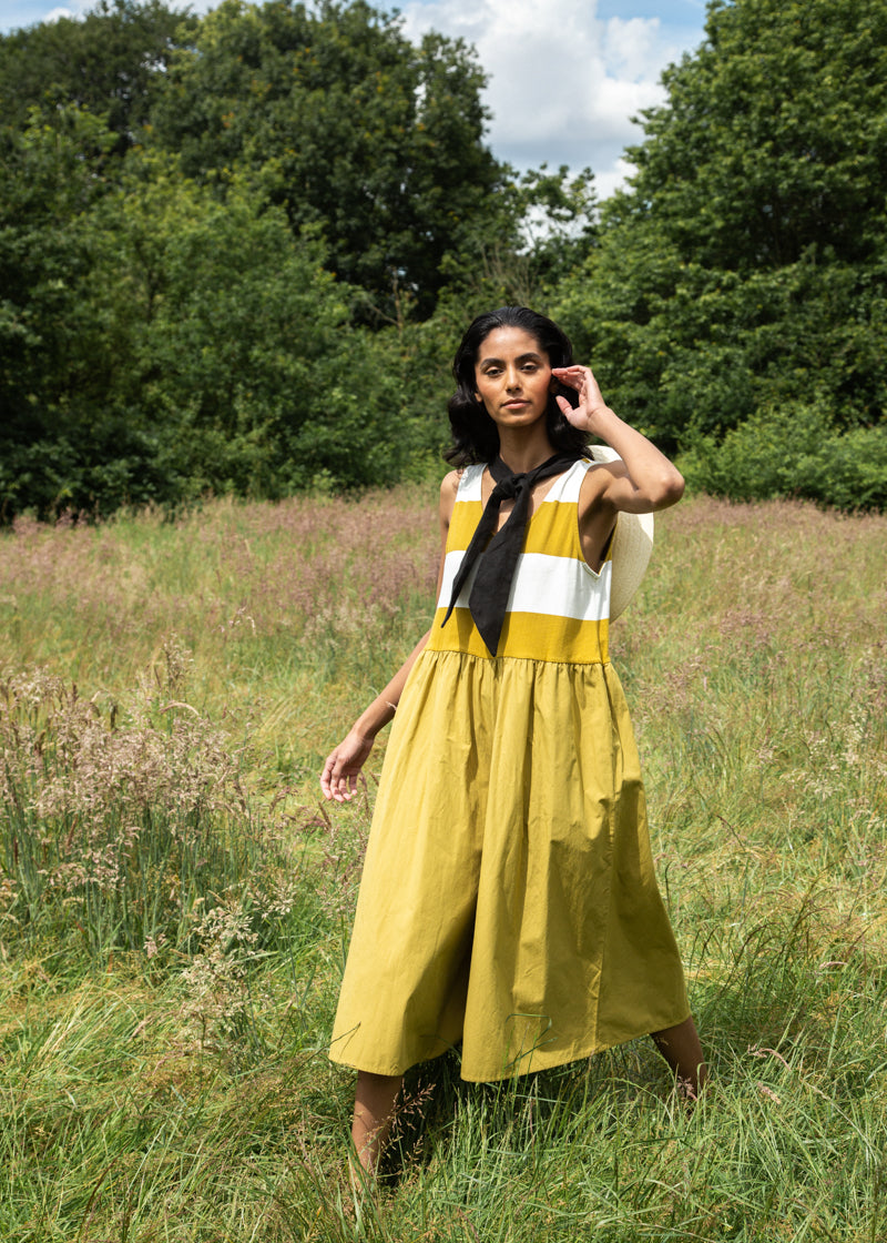 Riva-Sue Organic Cotton Dress in Midnight and White Bold Stripe