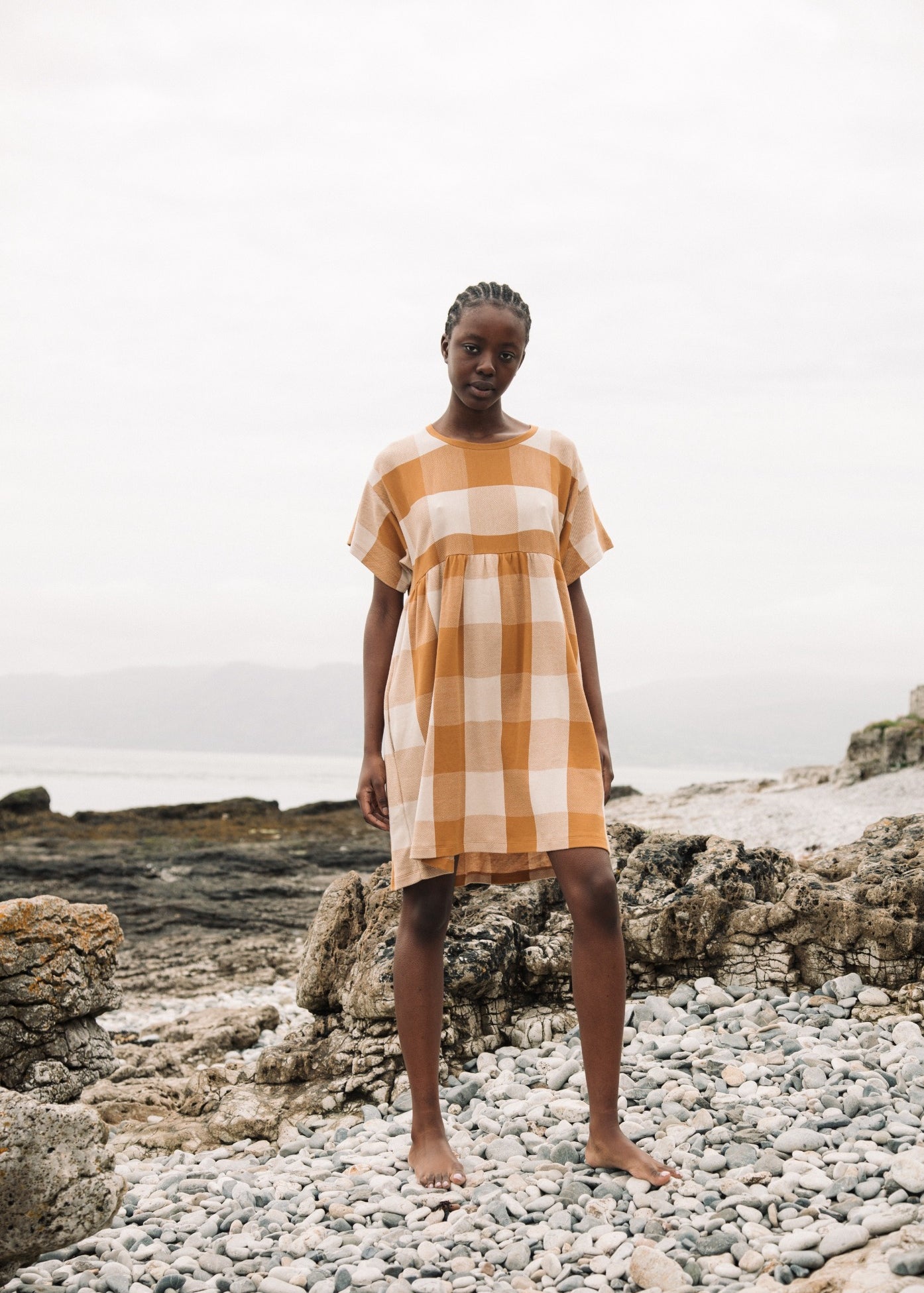 Lois-Cay Organic Cotton Dress in Ecru and Golden Tan
