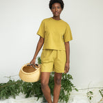 The Bay is our staple boxy fit, wide sleeved T-shirt, featuring a dipped hem. Made from our super soft 100% organic cotton jersey, in a fresh, bright olive colour for the Spring.