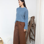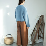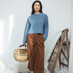 The Evora-Leigh trousers are a versatile wide leg style, crafted from a beautiful blend of recycled organic cotton and cotton denim, with a cropped hem, featuring an elasticated waist and side pockets.