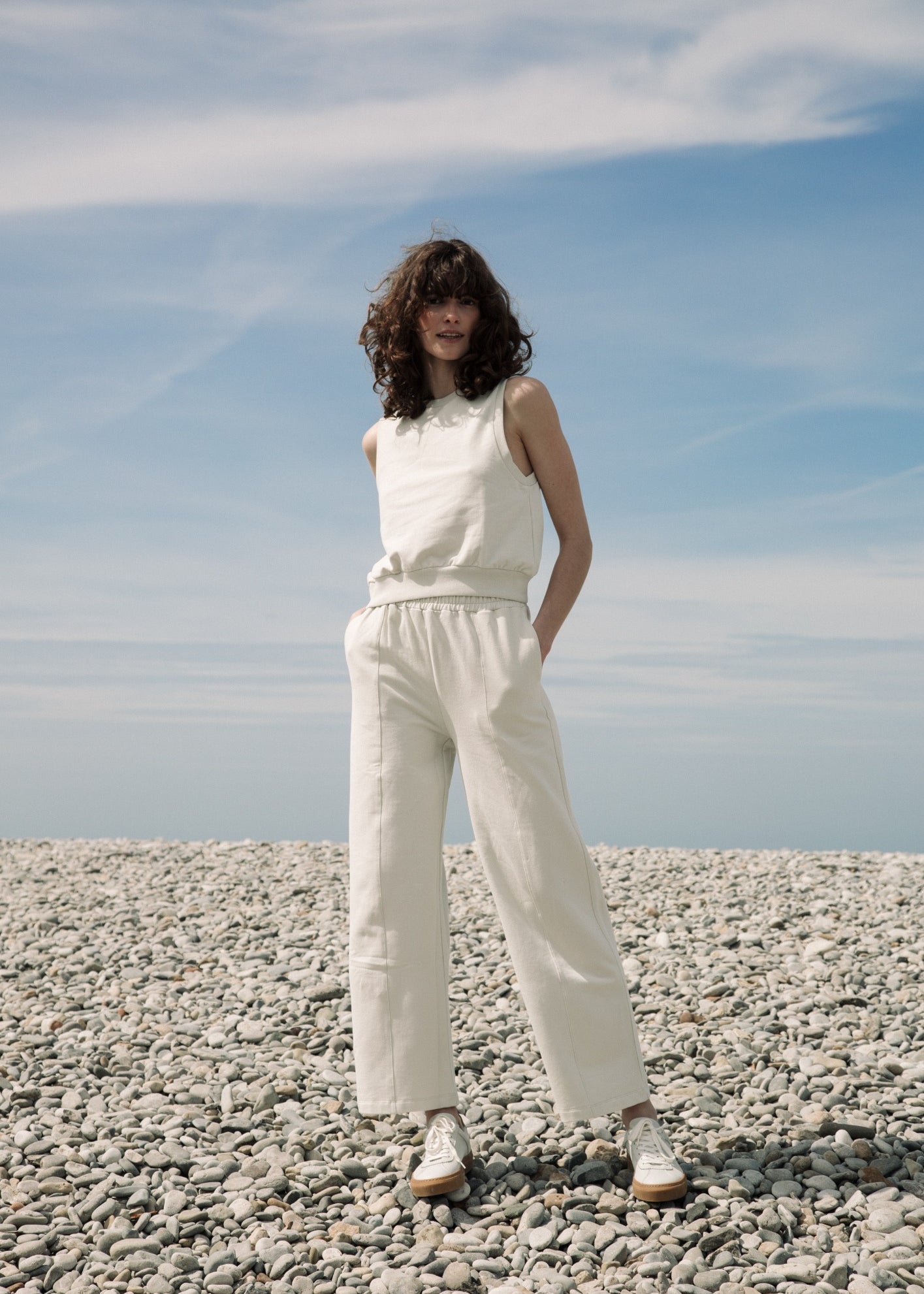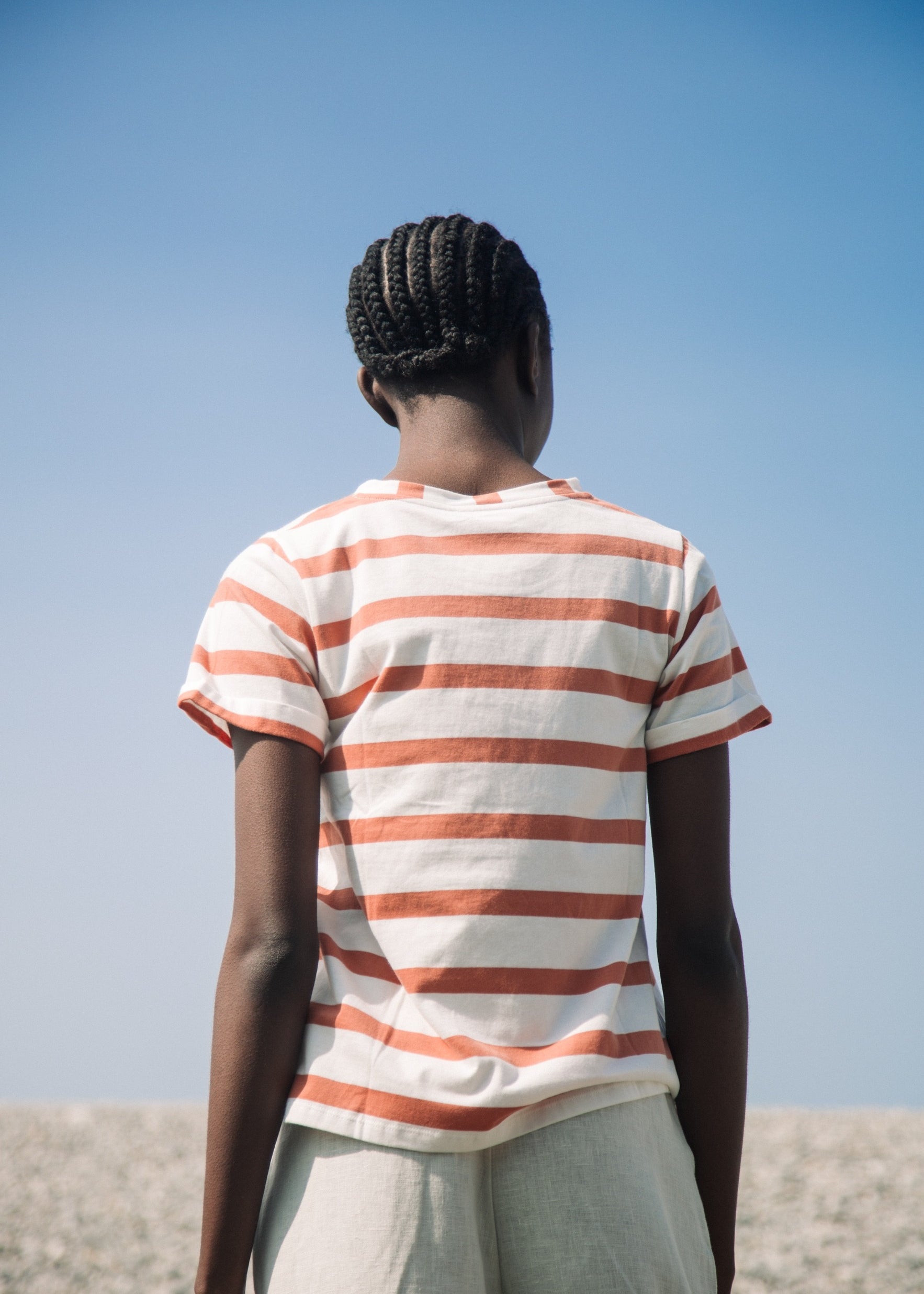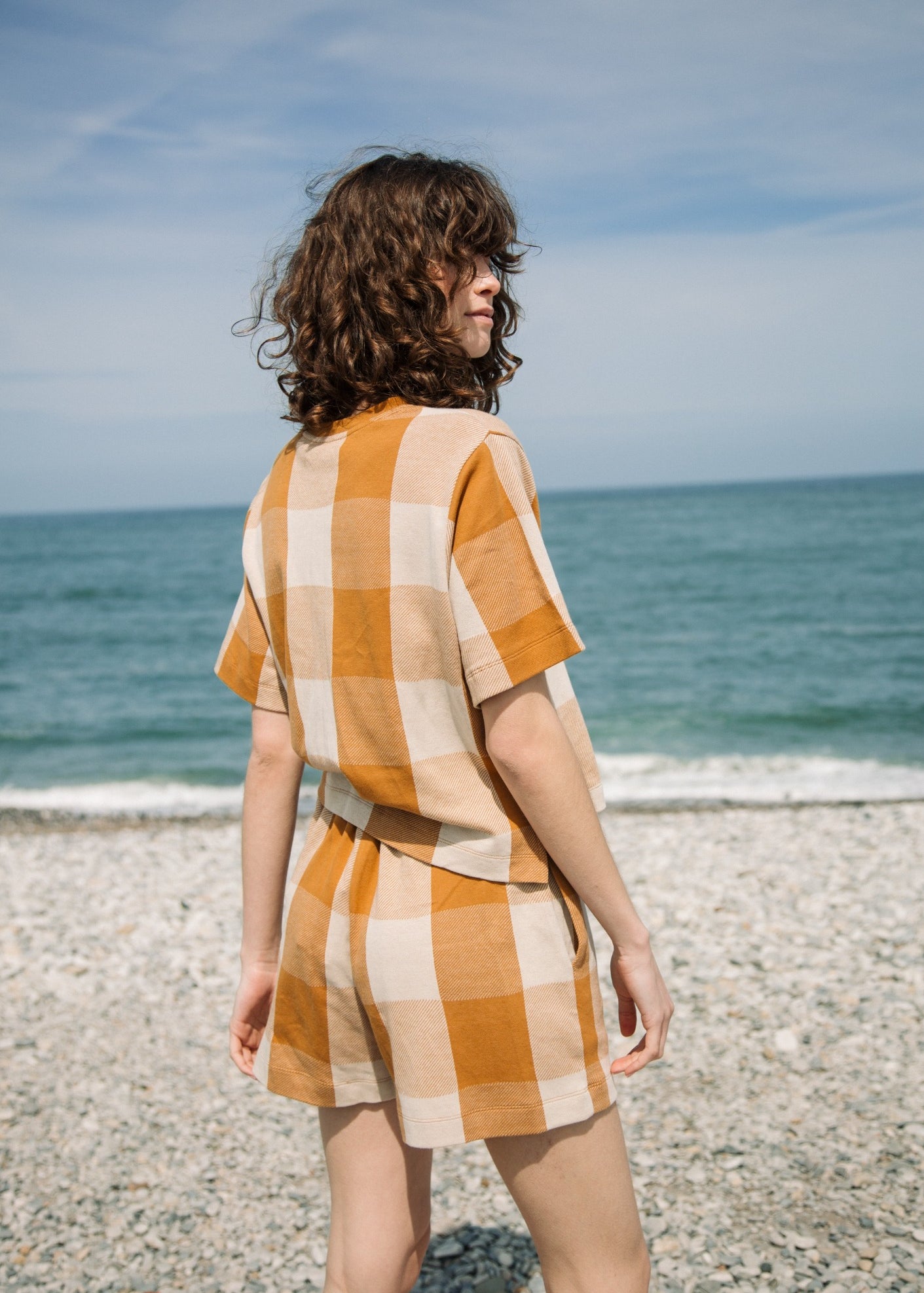 Bay-Cay Organic Cotton Top in Ecru and Golden Tan