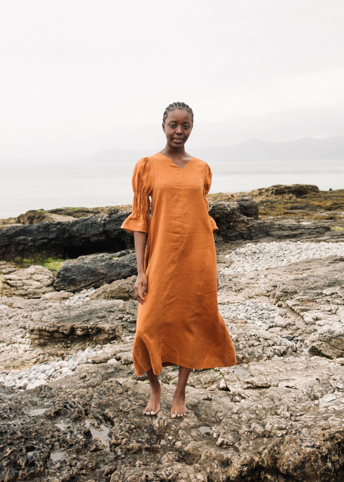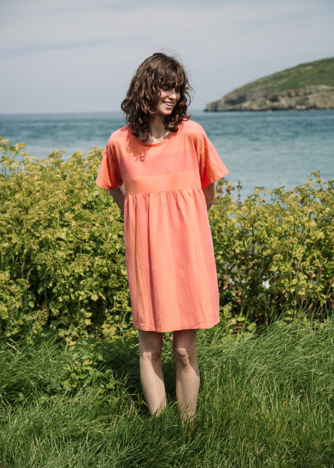 Lois-Sue Organic Cotton Dress in Coral and Apricot