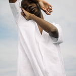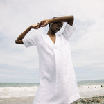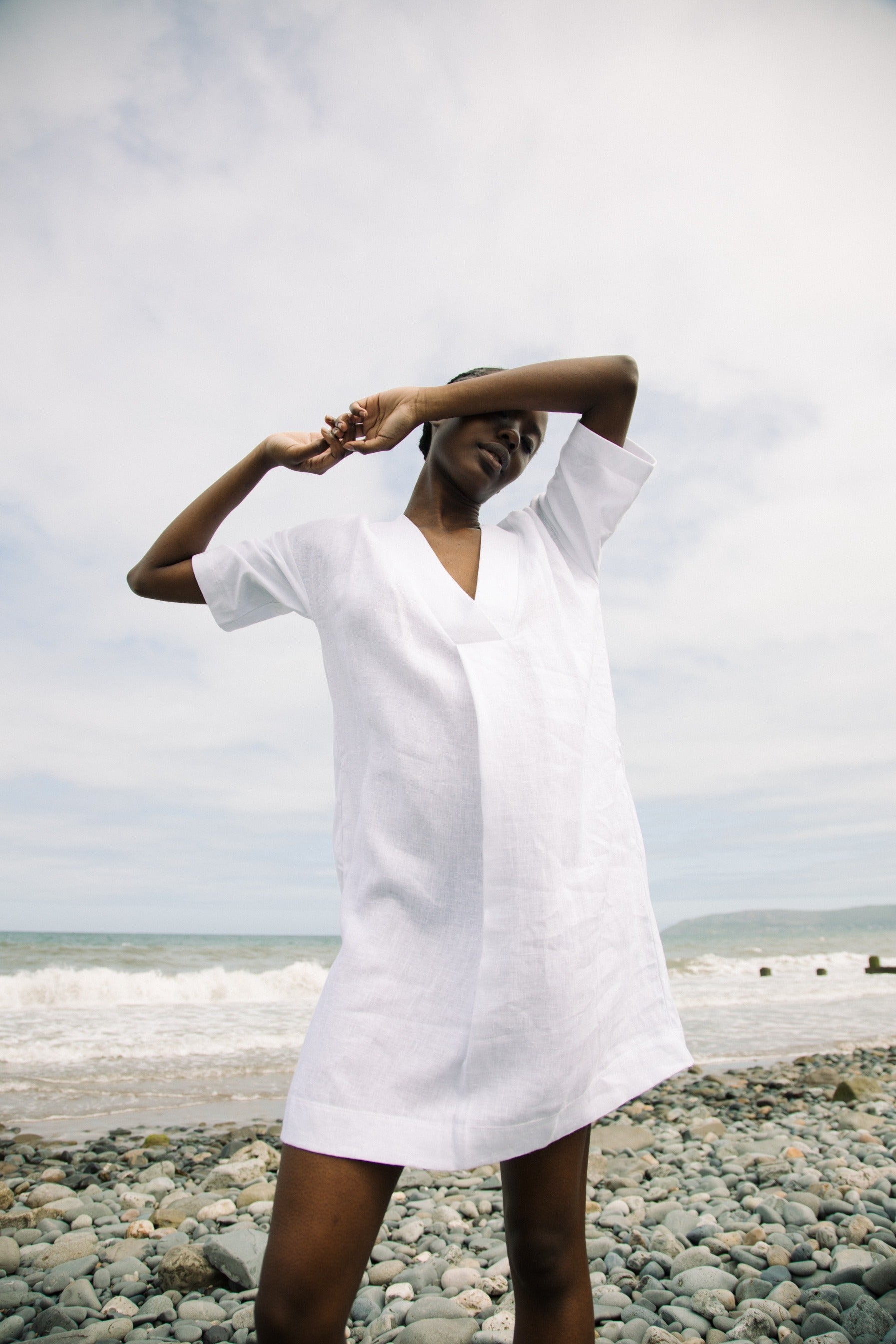 The front of the dress is 100% linen, contrasted with a soft Organic Cotton jersey back and sleeves.
