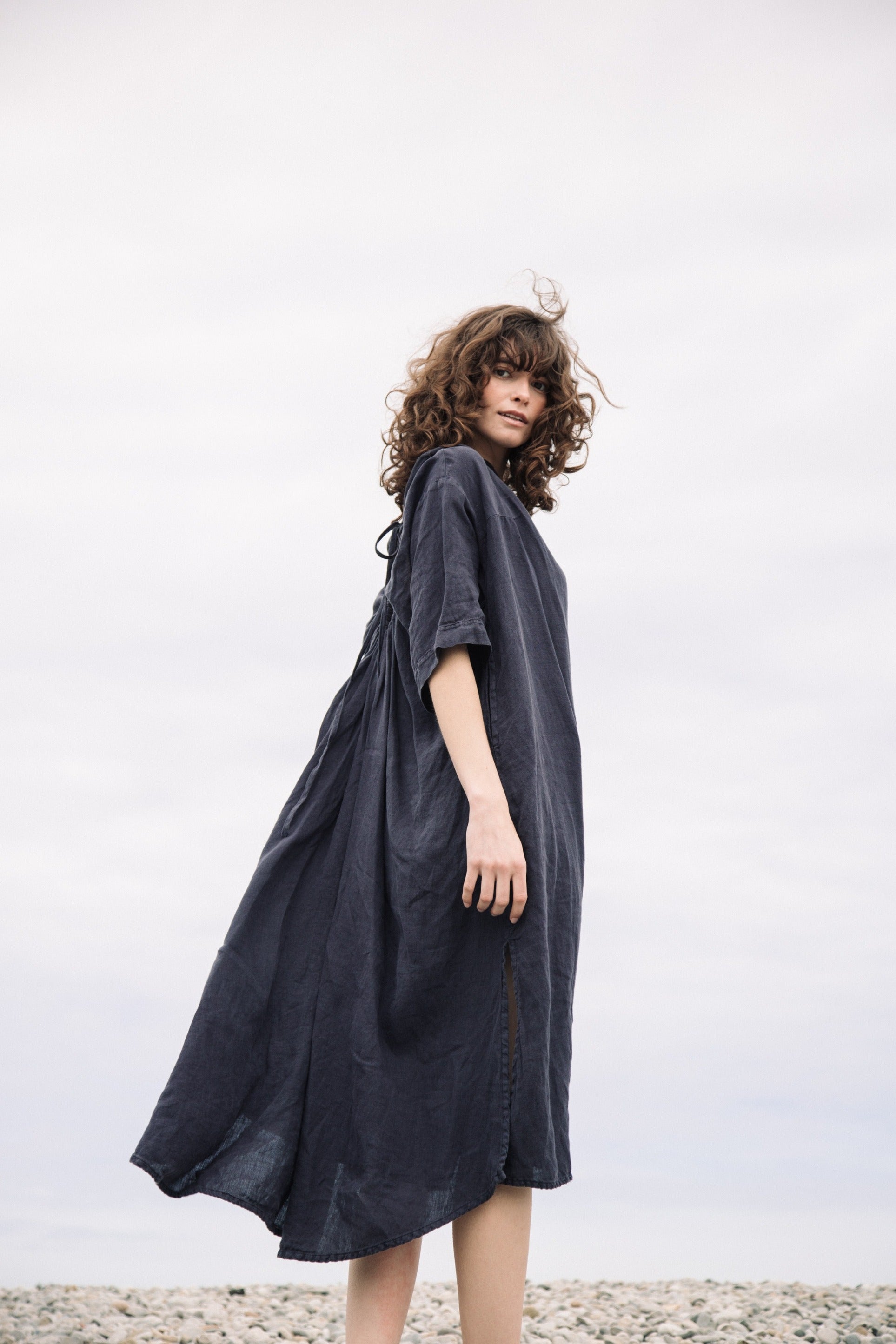 Featuring a side split and 3/4 length sleeves, this style is crafted from a lighter-weight linen for a soft floaty feel and drape.