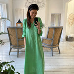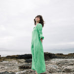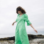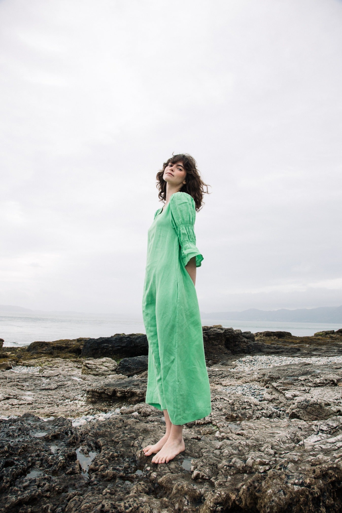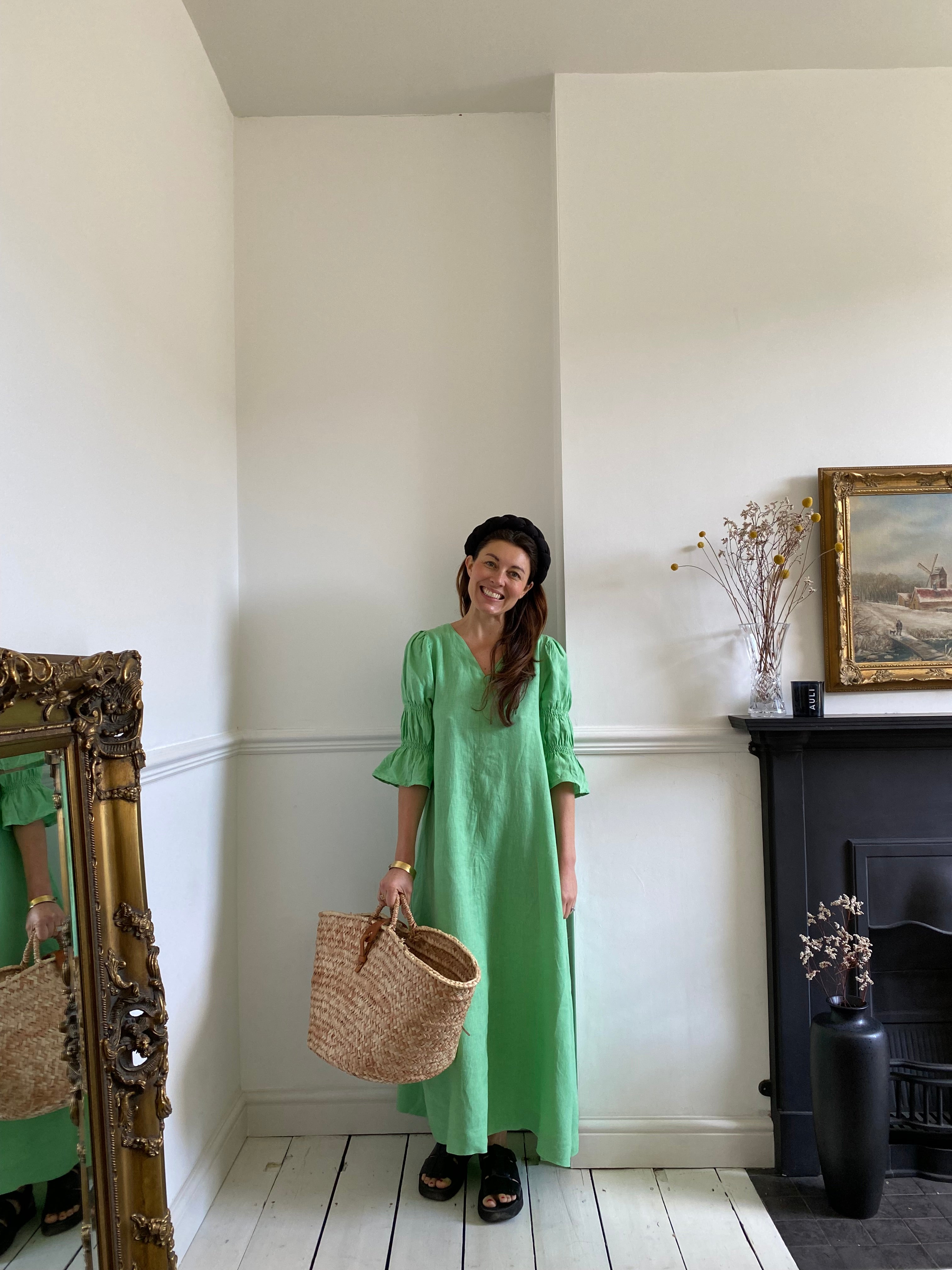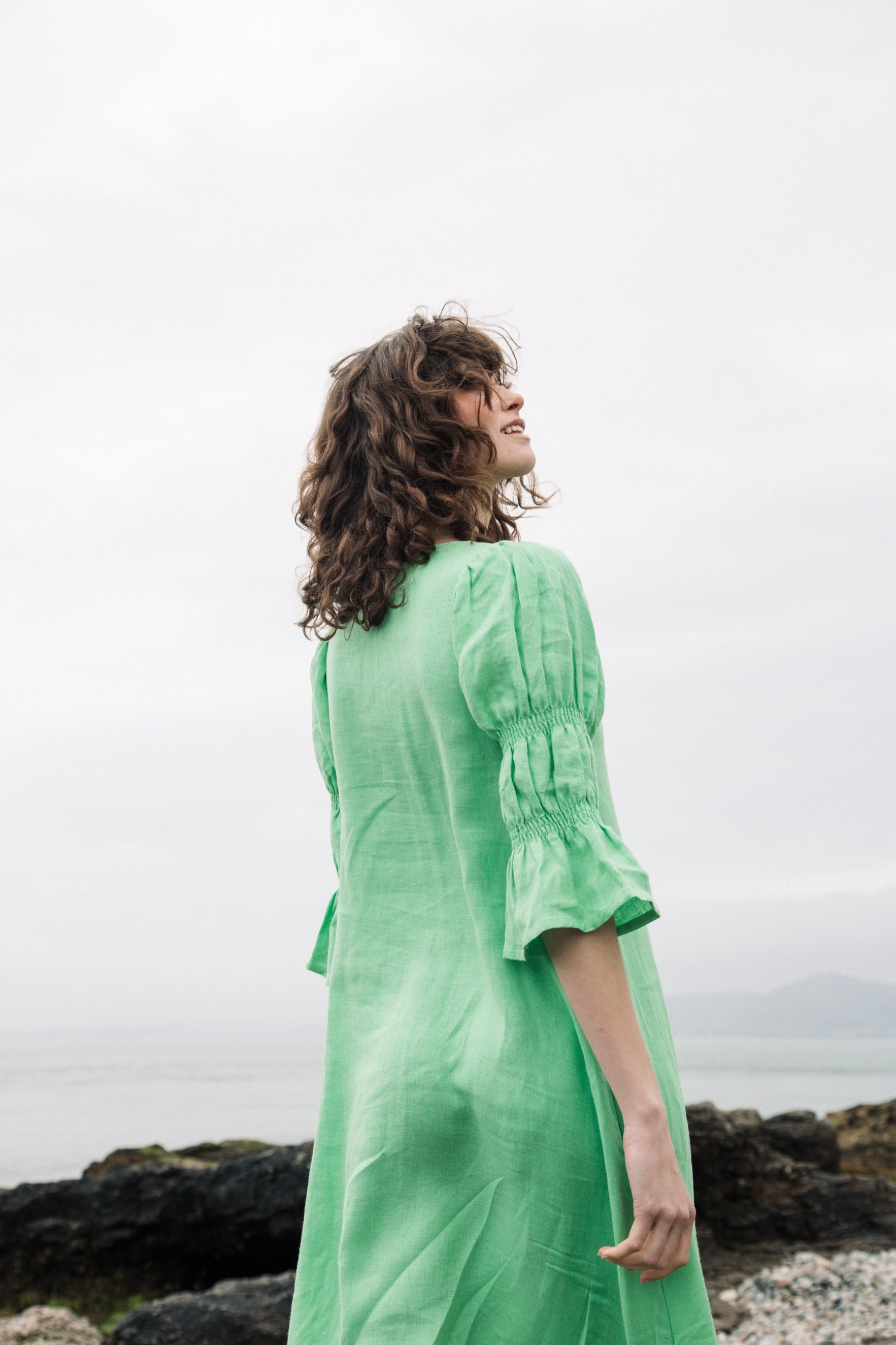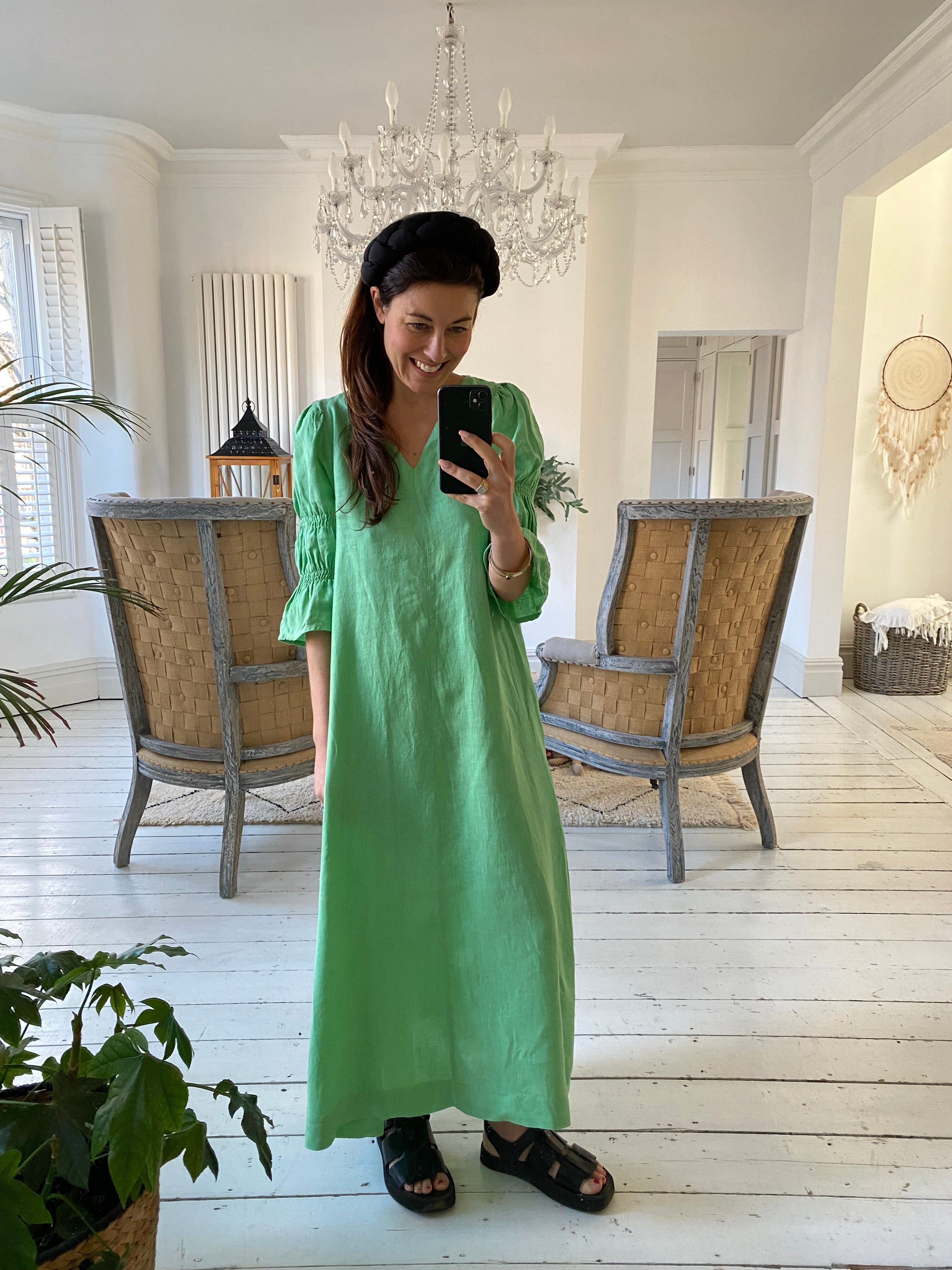 This seasons statement dress, the Nerissa is an A-line style with a V-neck, side pockets and a gathered puff sleeve.