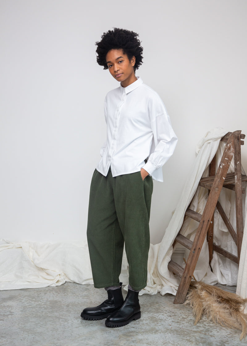 Konara Organic Cotton Jersey and Poplin Shirt in Pine