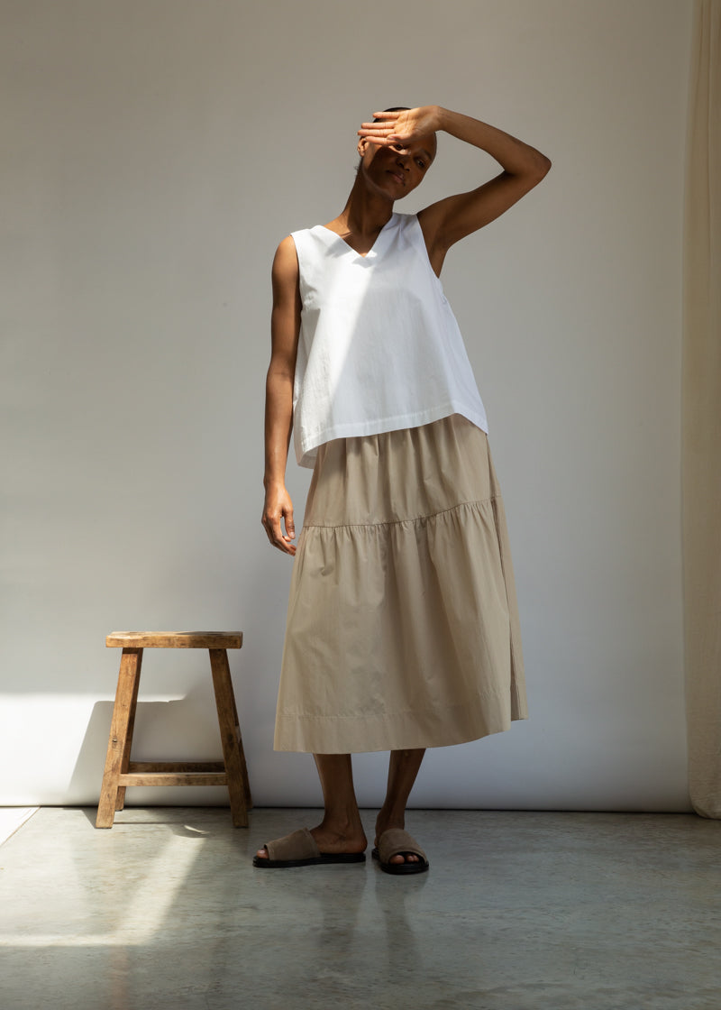 Cecilia Organic Cotton Poplin Skirt in Sand