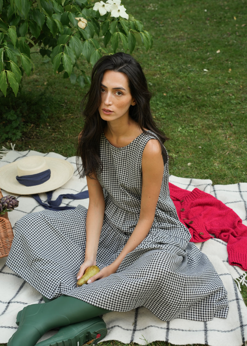 Kyra-Cay Organic Cotton Double Gauze Dress in Monochrome Gingham