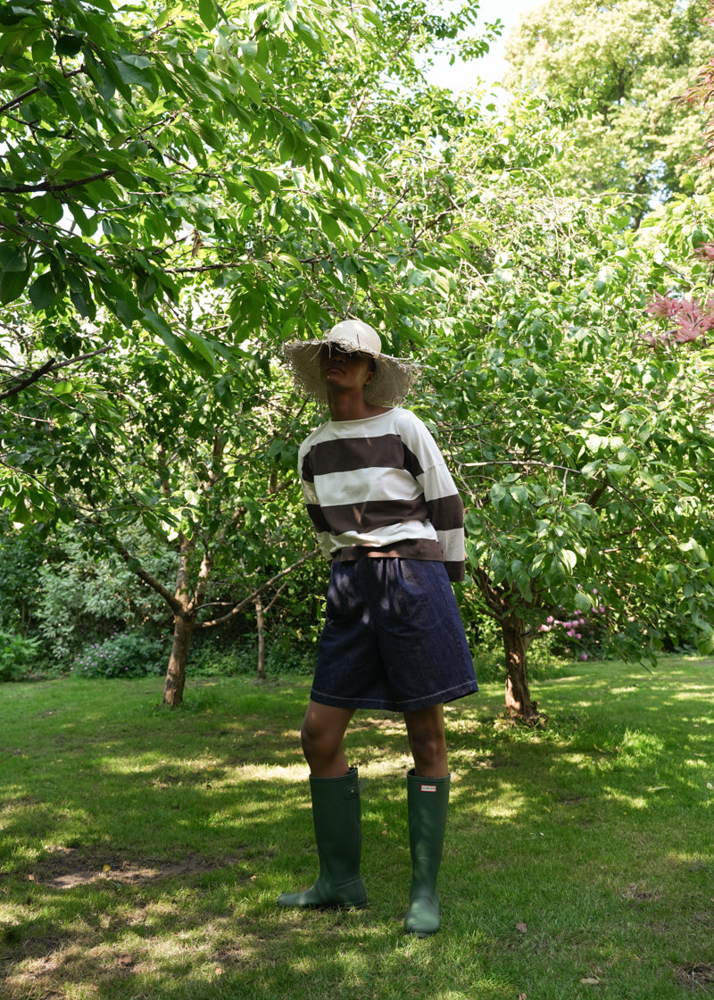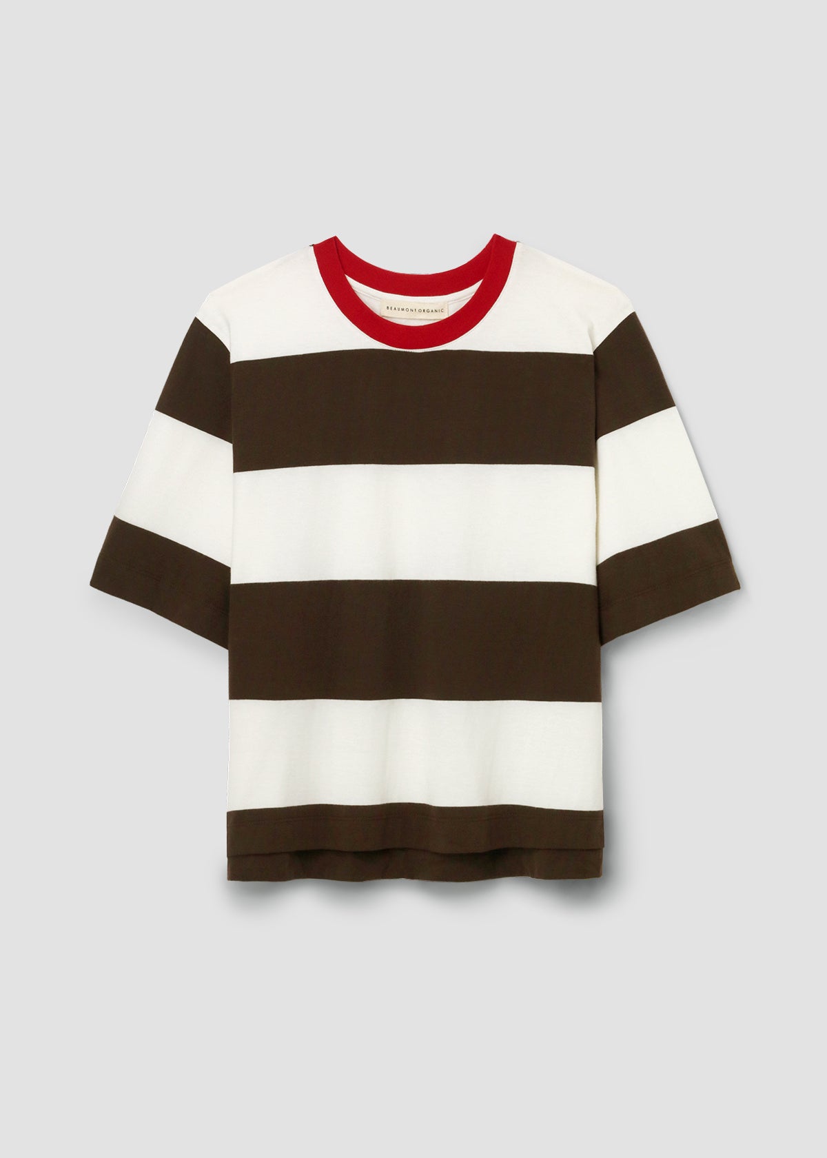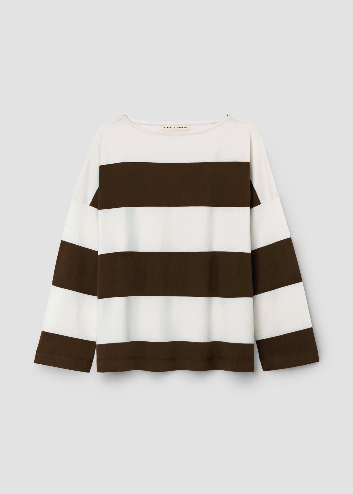 Bay-Sue Organic Cotton Jersey Stripe Top in Cacao & White Wide Stripe