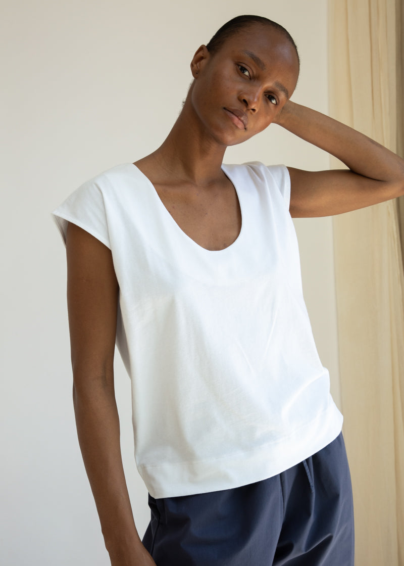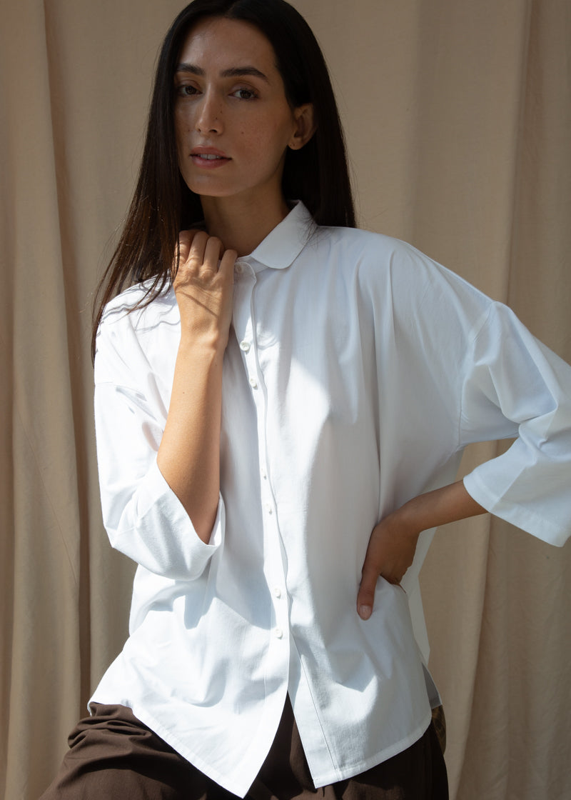 Nancy Organic Cotton Jersey and Poplin Shirt in White
