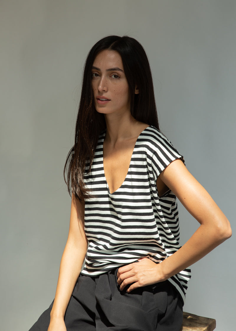 Tamsin-Sue Organic Cotton Jersey Stripe Top in Black & White Stripe