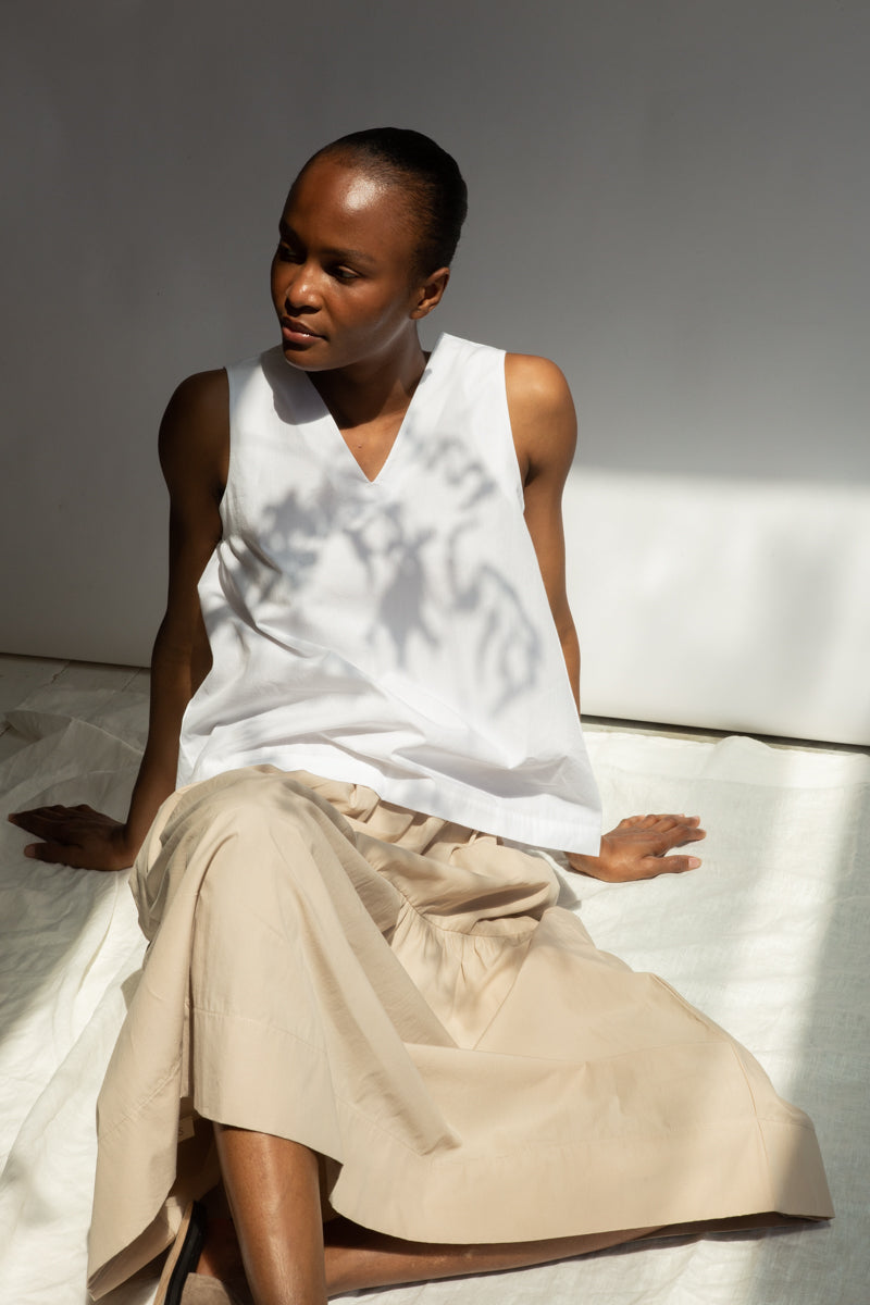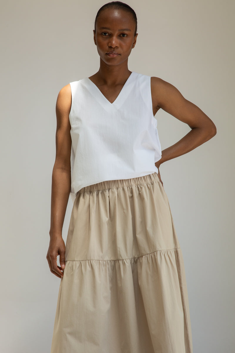 Cecilia Organic Cotton Poplin Skirt in Sand