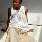 The Cecilia skirt is an A-line maxi length, panelled style with an elasticated waistband and side pockets. Crafted from crisp poplin which has been brushed inside and out for a clean yet soft finish.
