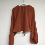The Chaya top is an elegant blouse style featuring balloon sleeves with soft gathered elastic neckline, cuffs and drawstring hem.