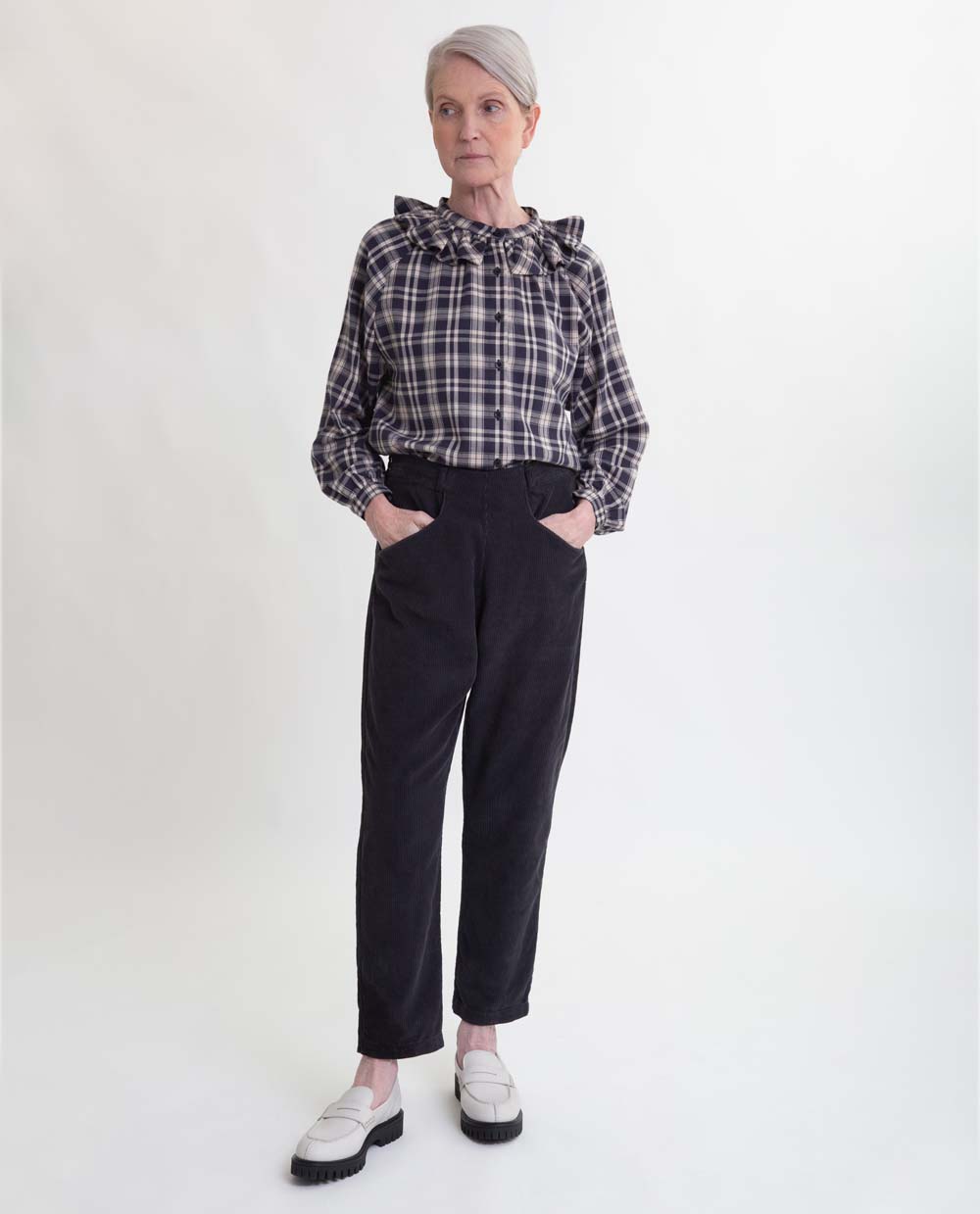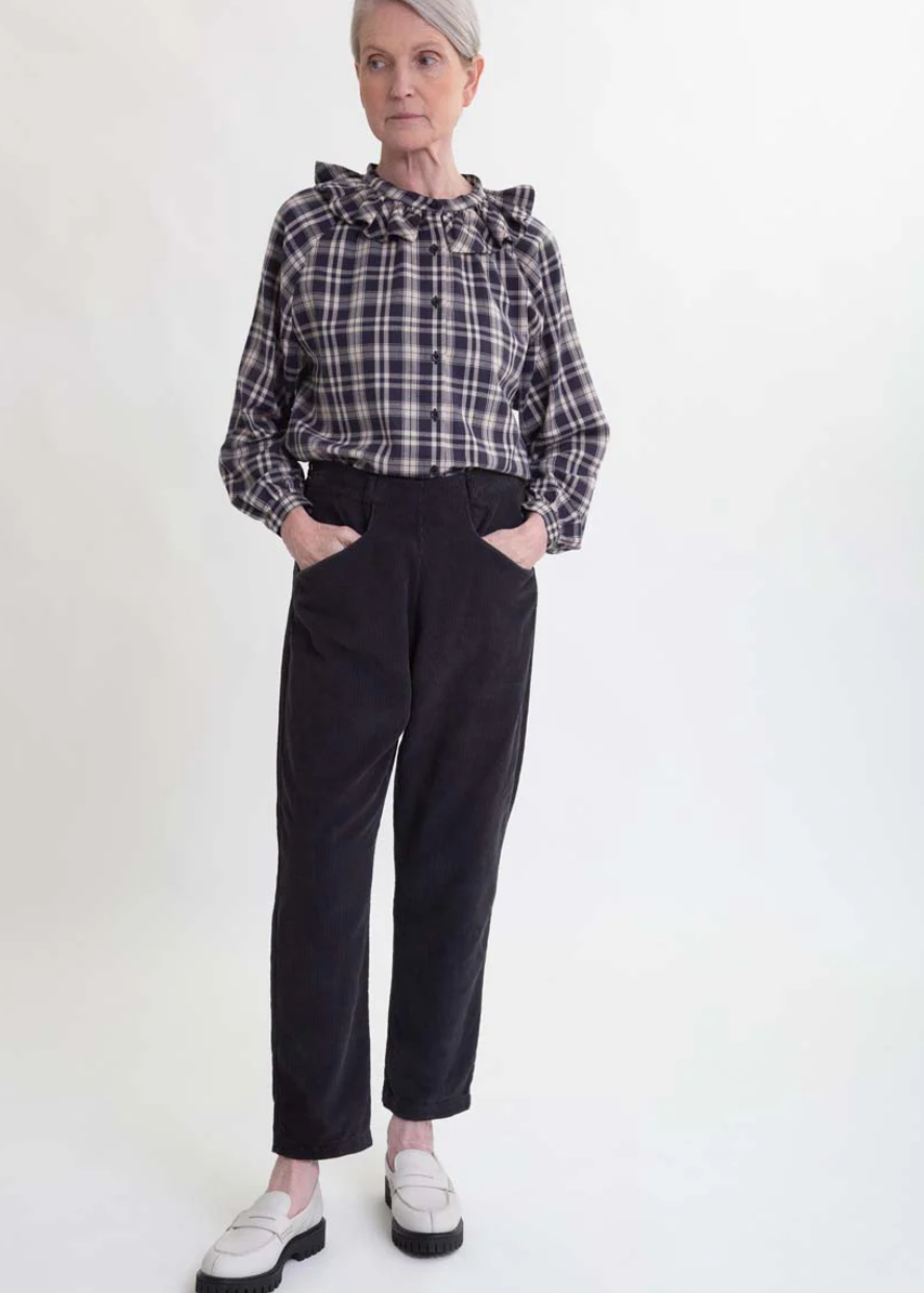 Erica Organic Cotton Cord Trousers In Charcoal