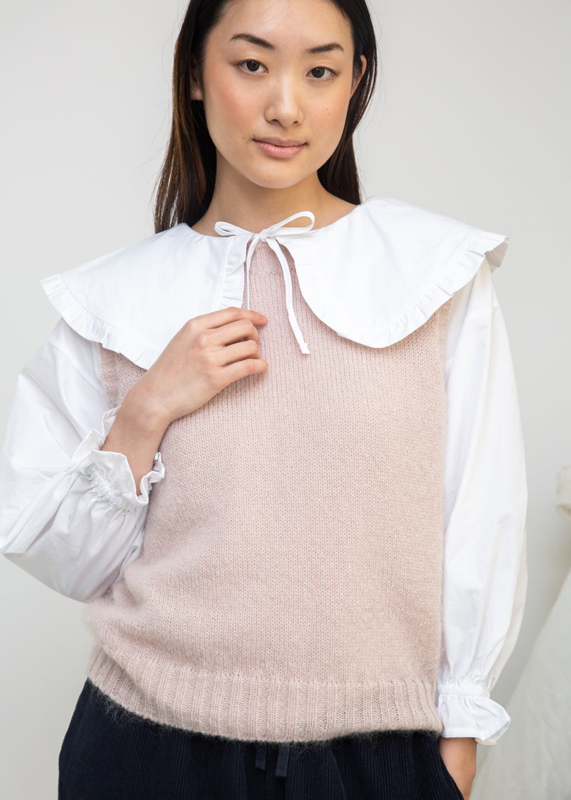 Arosa Mohair Knitted Vest in Shell Pink by HANNAH BEAUMONT