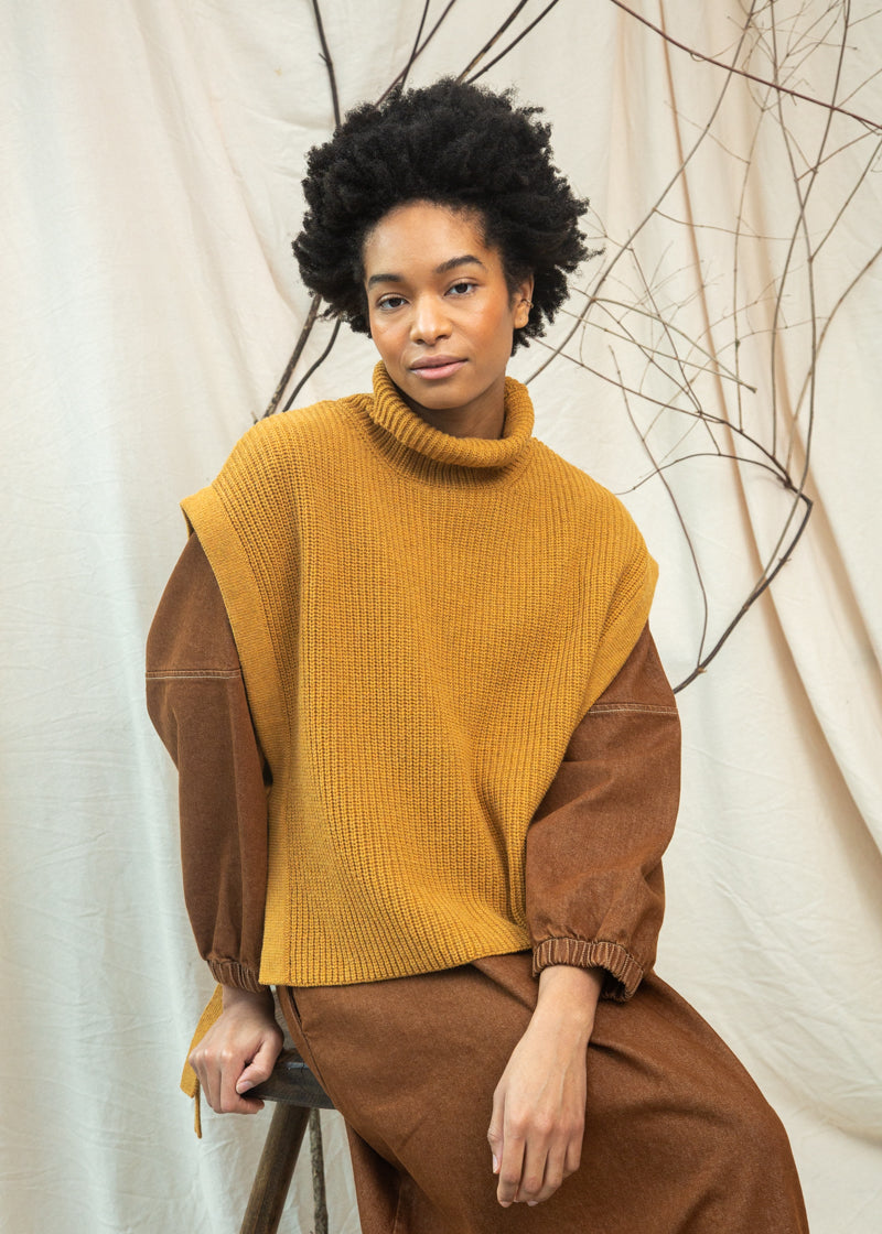 Kanon Recycled Wool Knitted Vest in Ochre Marl