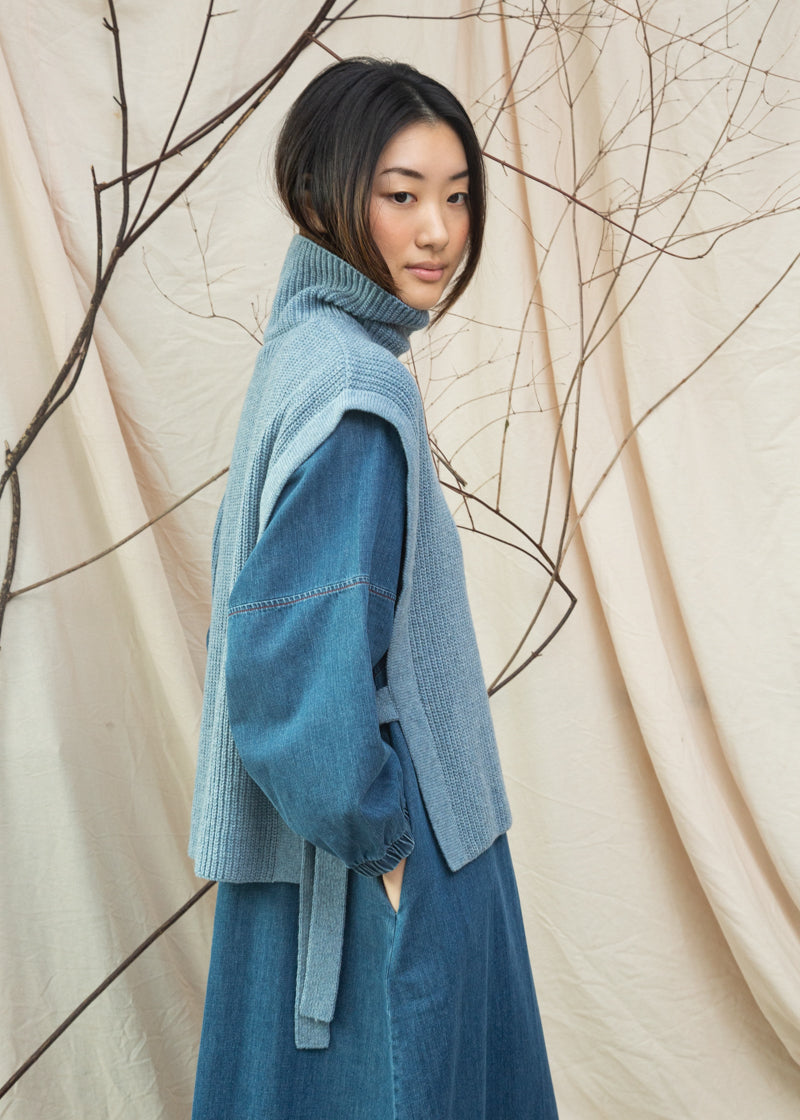 Kanon Recycled Wool Knitted Vest in Sky Blue Marl