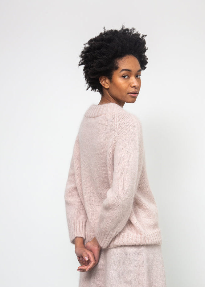 Solstice Mohair Knitted Jumper in Shell Pink by HANNAH BEAUMONT