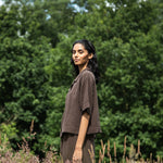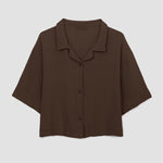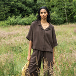 Ameera is a short-sleeved boxy-fit shirt with a button down front. Crafted from our beautifully soft organic double gauze cotton, it features a relaxed revere collar neckline an sustainable corozo buttons.