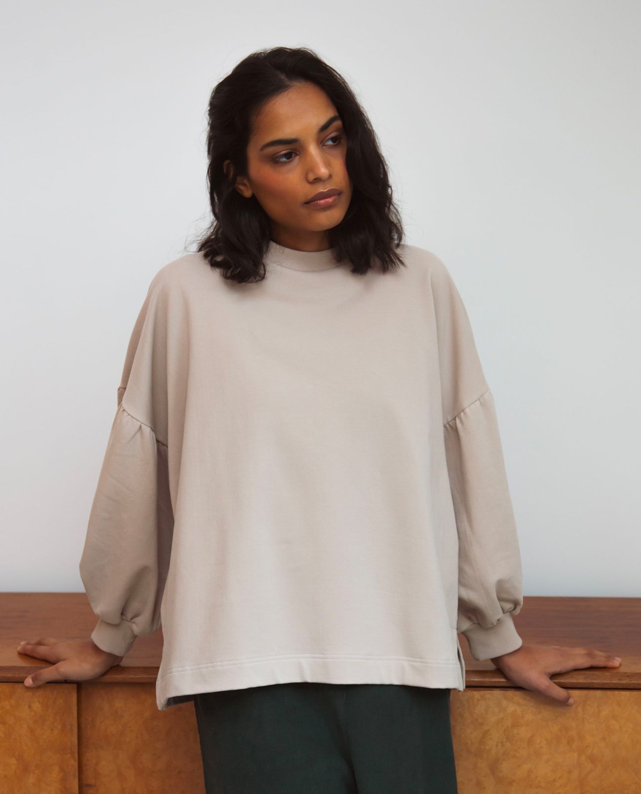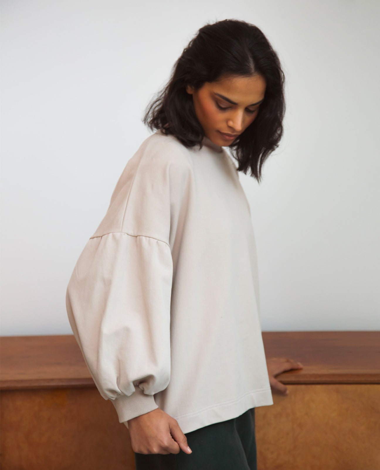 Our signature organic cotton is brushed both inside and out for a luxuriously soft feel. Designed with a relaxed boxy shape, the Amelia Sweatshirt features a drop shoulder and voluminous sleeves. Perfect for all seasons.