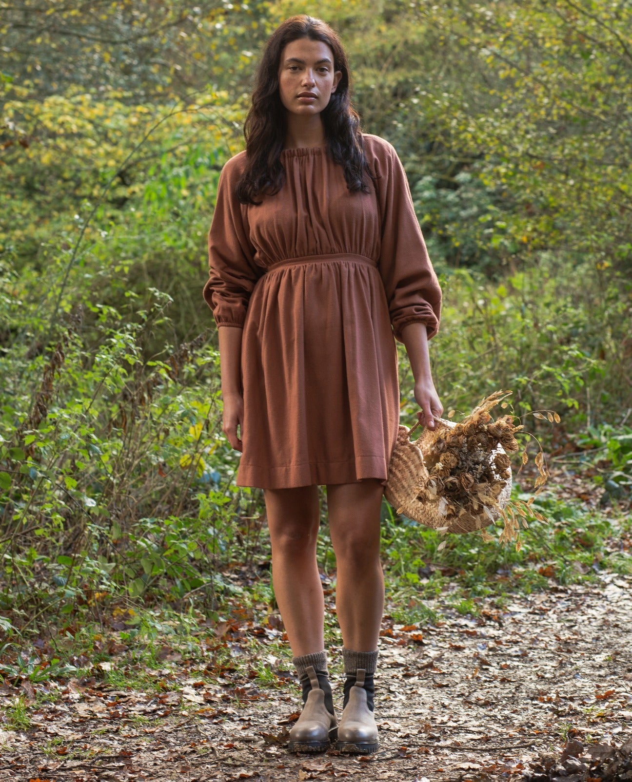 Ava-Jane Cotton Brushed Twill Dress in Cinnamon M Preloved