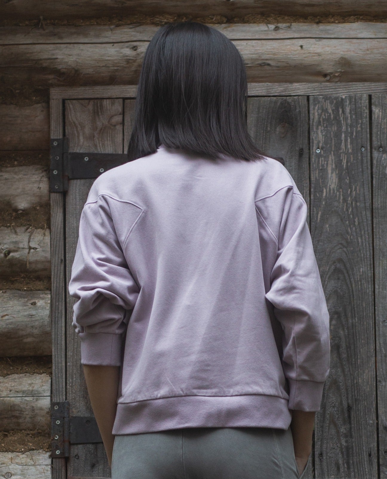 The Ginny is a boxy fit sweatshirt with a V seam detail at the shoulder.