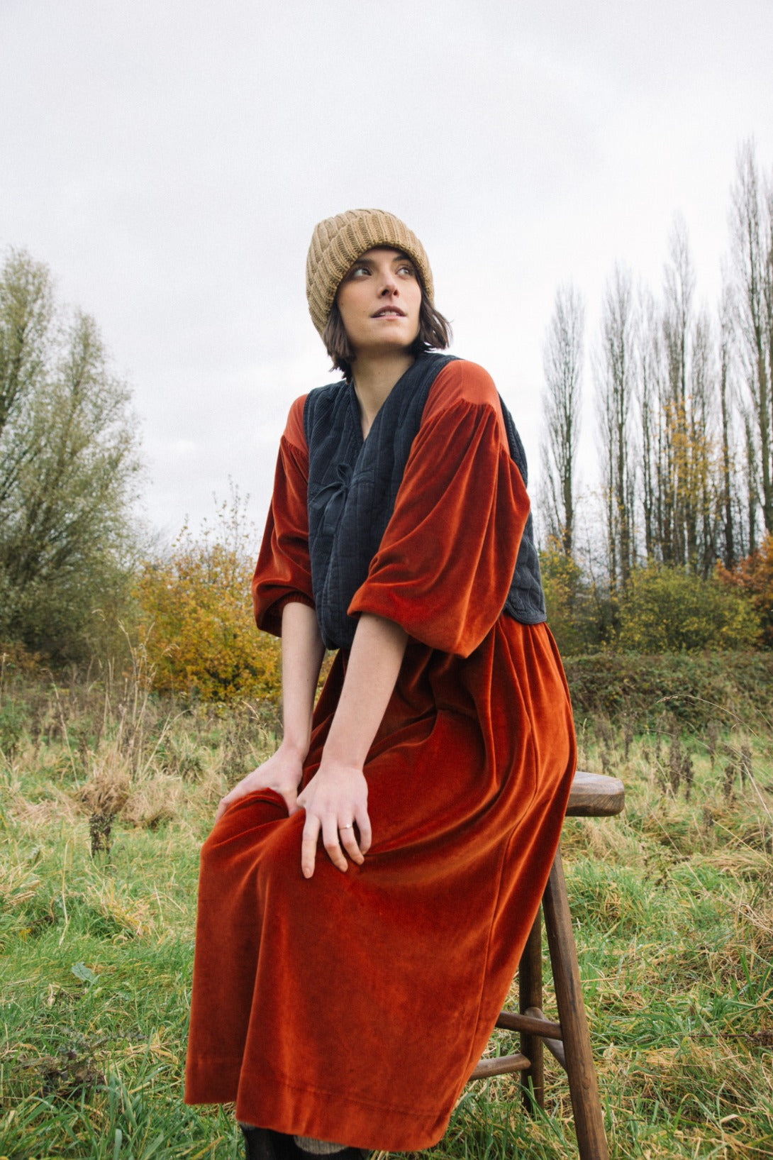 Evergreen Organic Cotton Cord Gilet in Charcoal