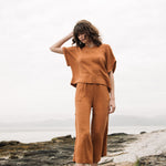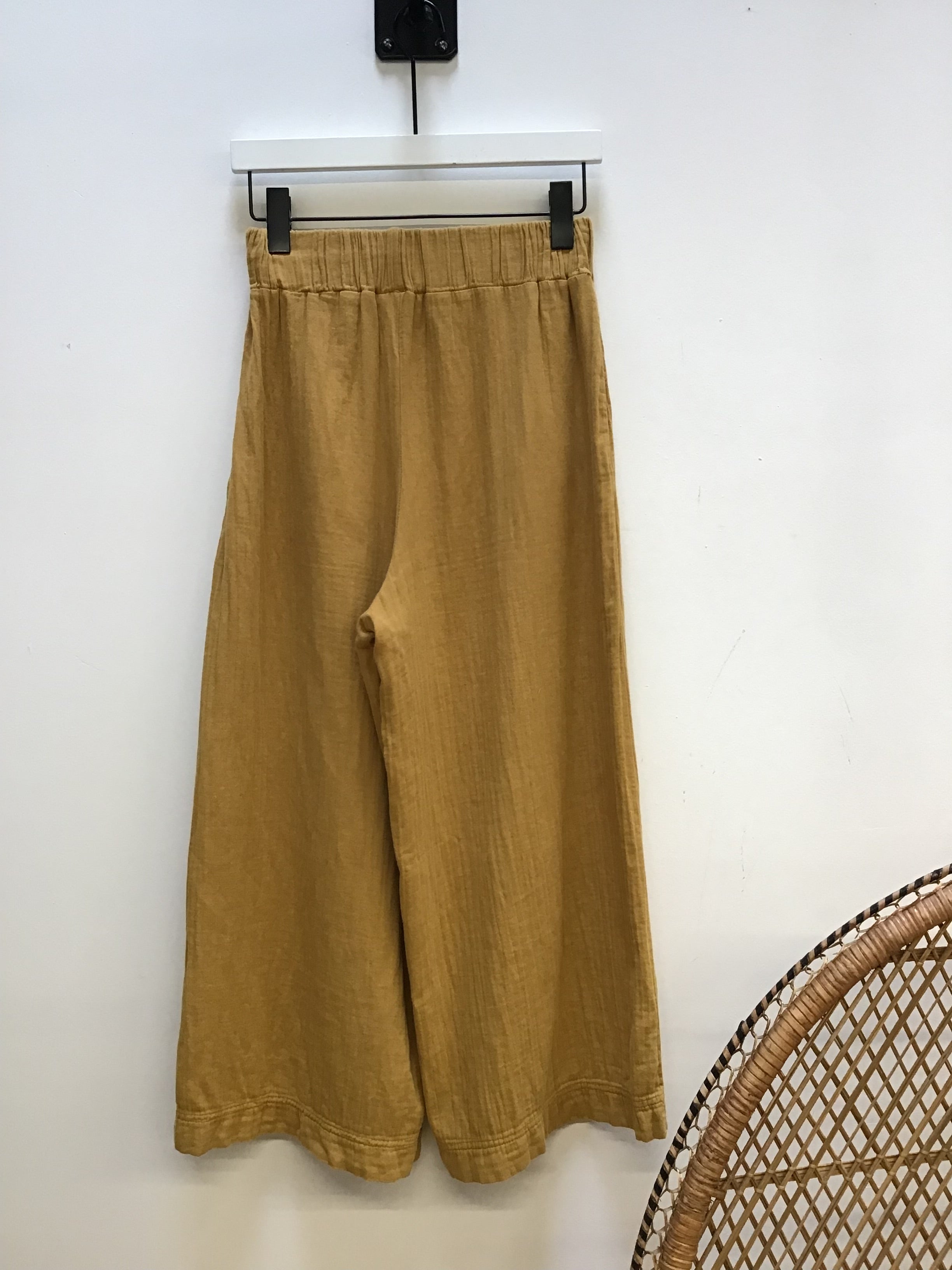 The Evora trousers are a versatile wide leg style, crafted from our signature Organic Cotton cheesecloth fabric for a soft textured feel. Featuring an elasticated waistband and side pockets.