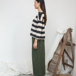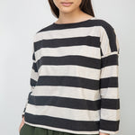Leia-Sue Organic Cotton Stripe Jersey Top in Charcoal & Ecru Marl Stripe