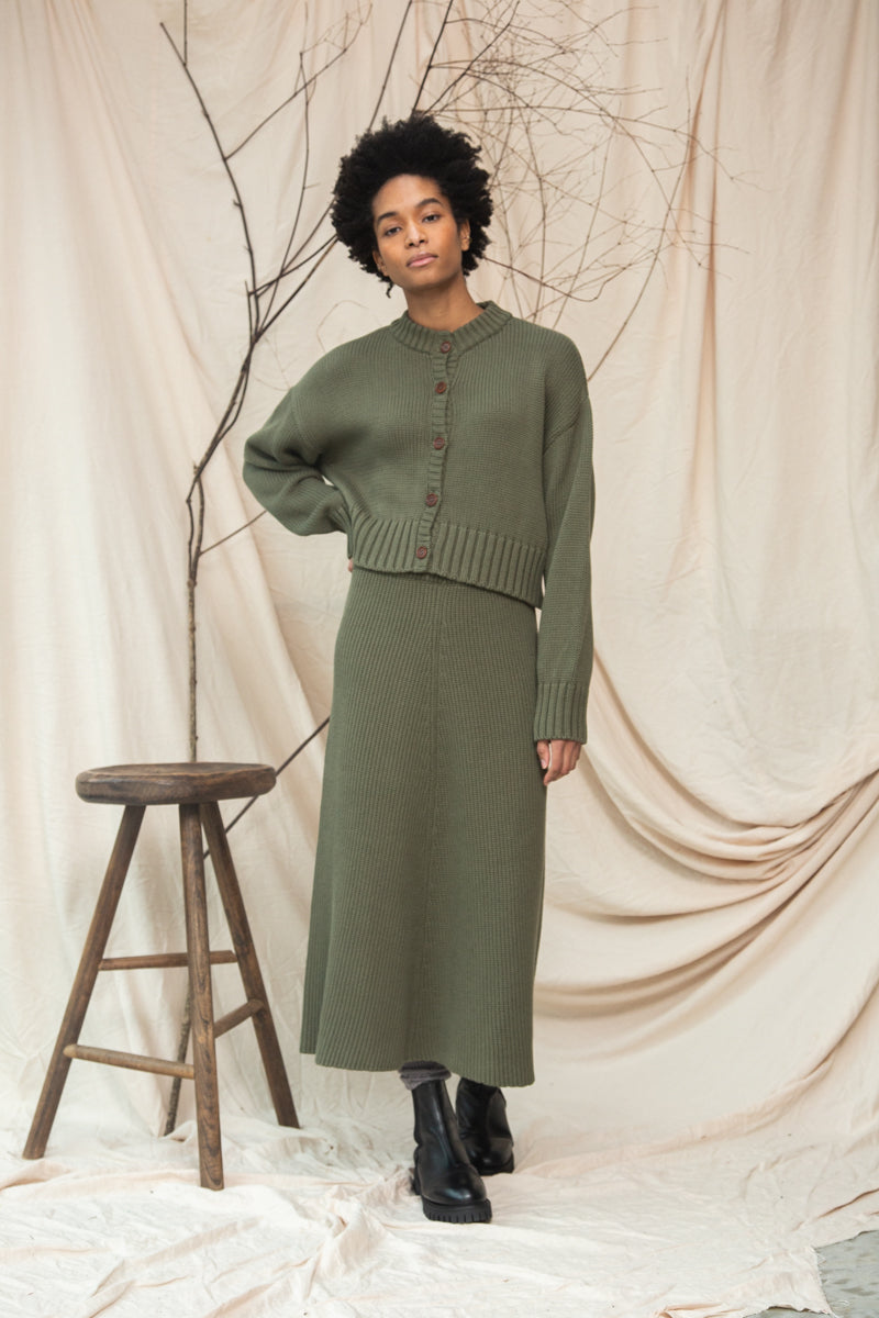 Mio Organic Cotton Knitted Skirt in Soft Khaki