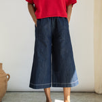 The Nicole-Leigh is our classic wide-leg culotte style trouser. Featuring an elasticated waistband, side pockets and contrast stitching.