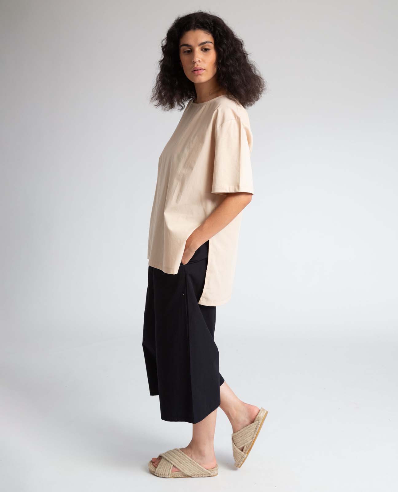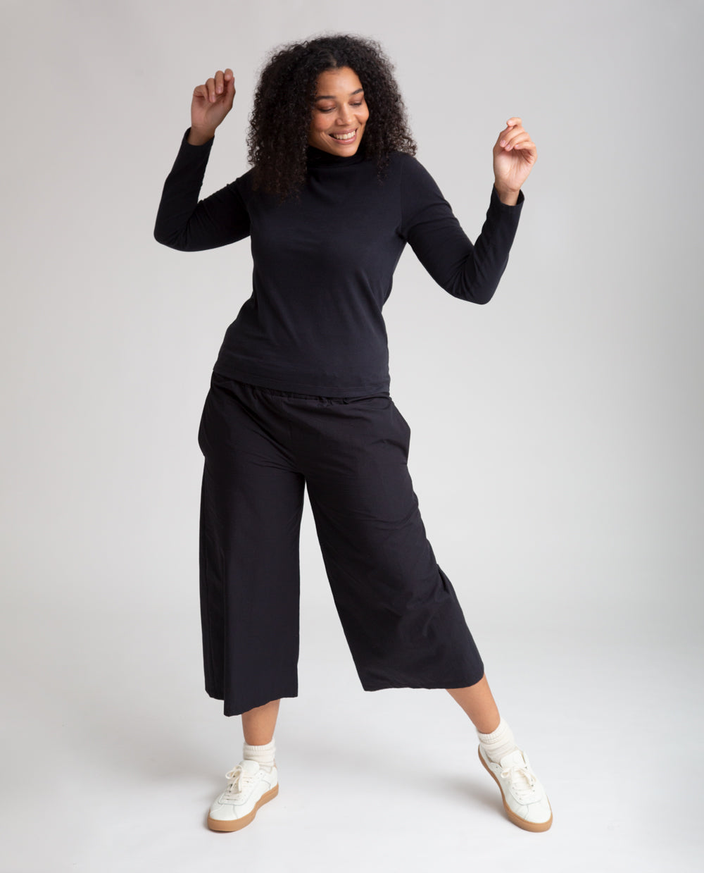 The Adrienne is a comfortable yet smart culotte style, made from smooth organic cotton poplin for a crisp tailored feel.