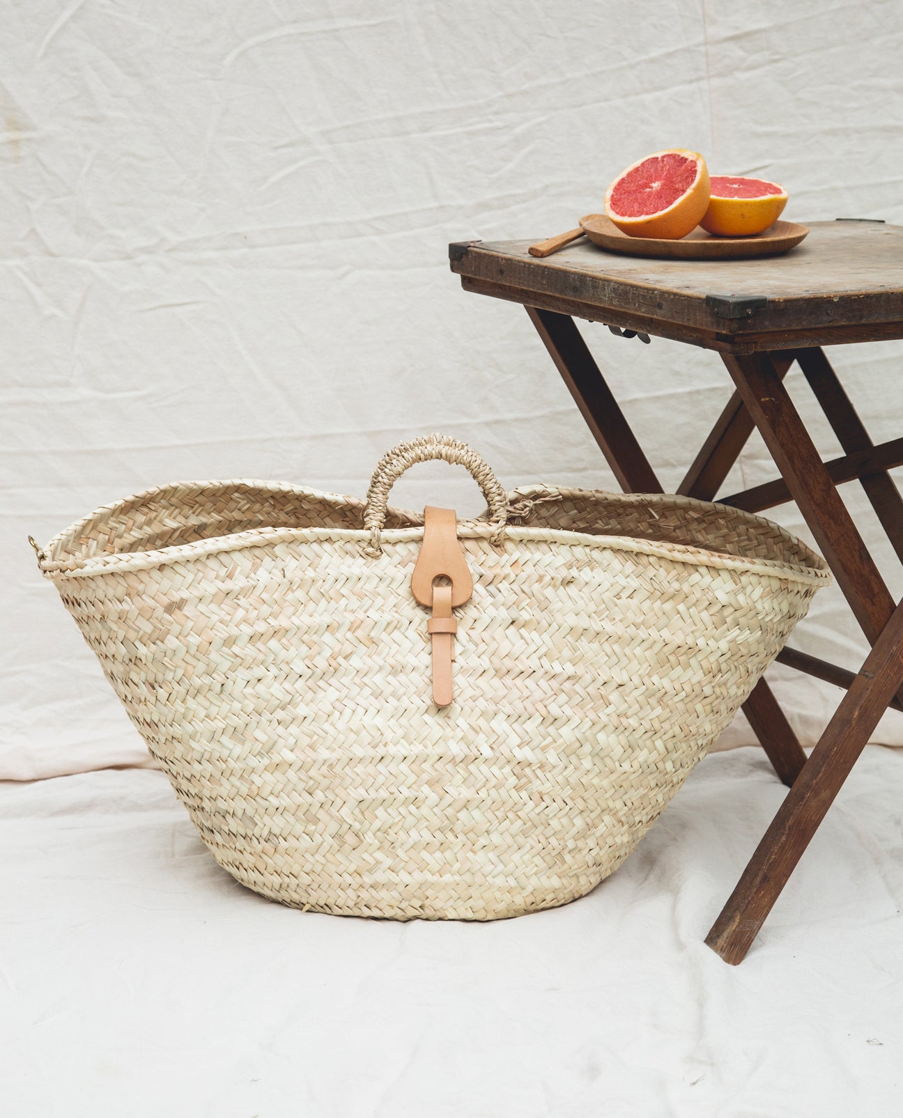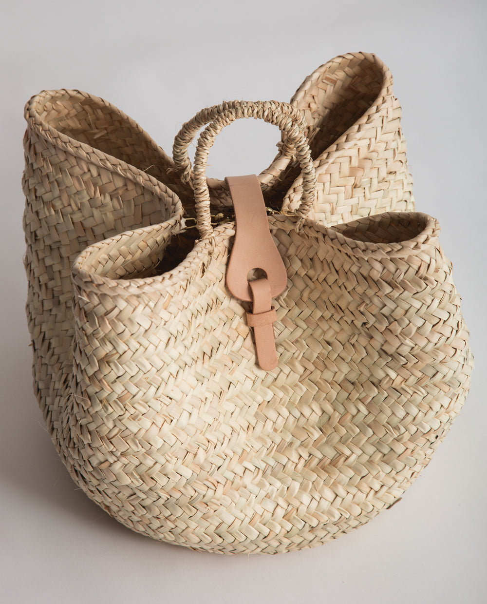 - Body and handles: 100% straw. Clasp: 100% Natural Leather