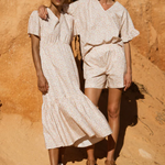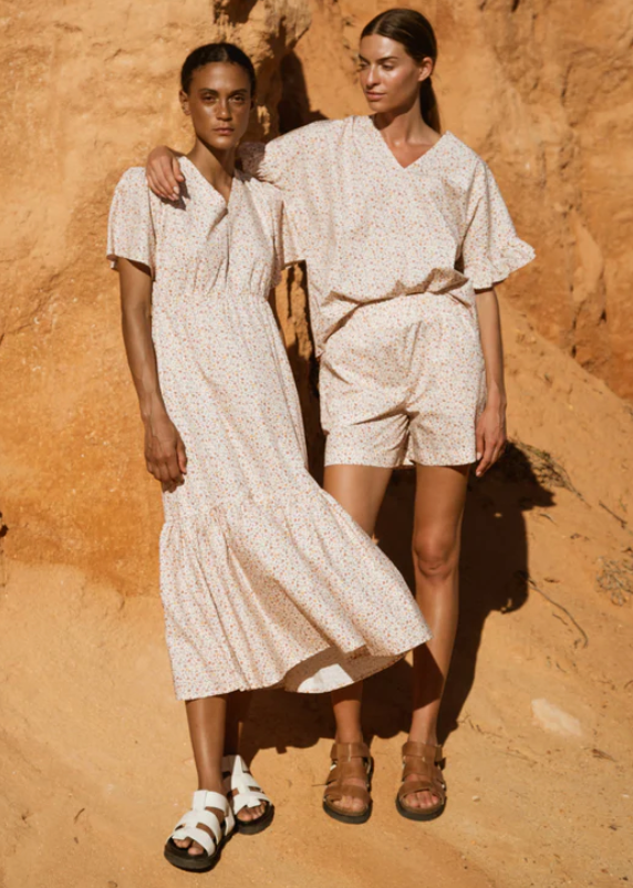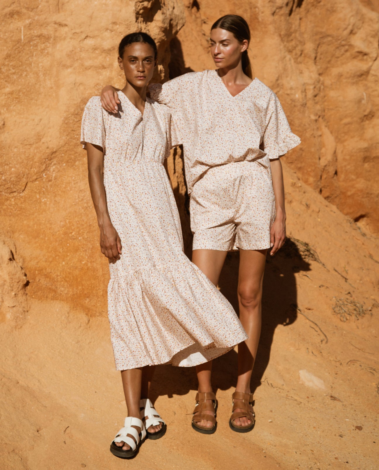 The Arabella-Paige is a delicate style top with an oversized boxy shape, v-neck and soft ruffles on sleeves.