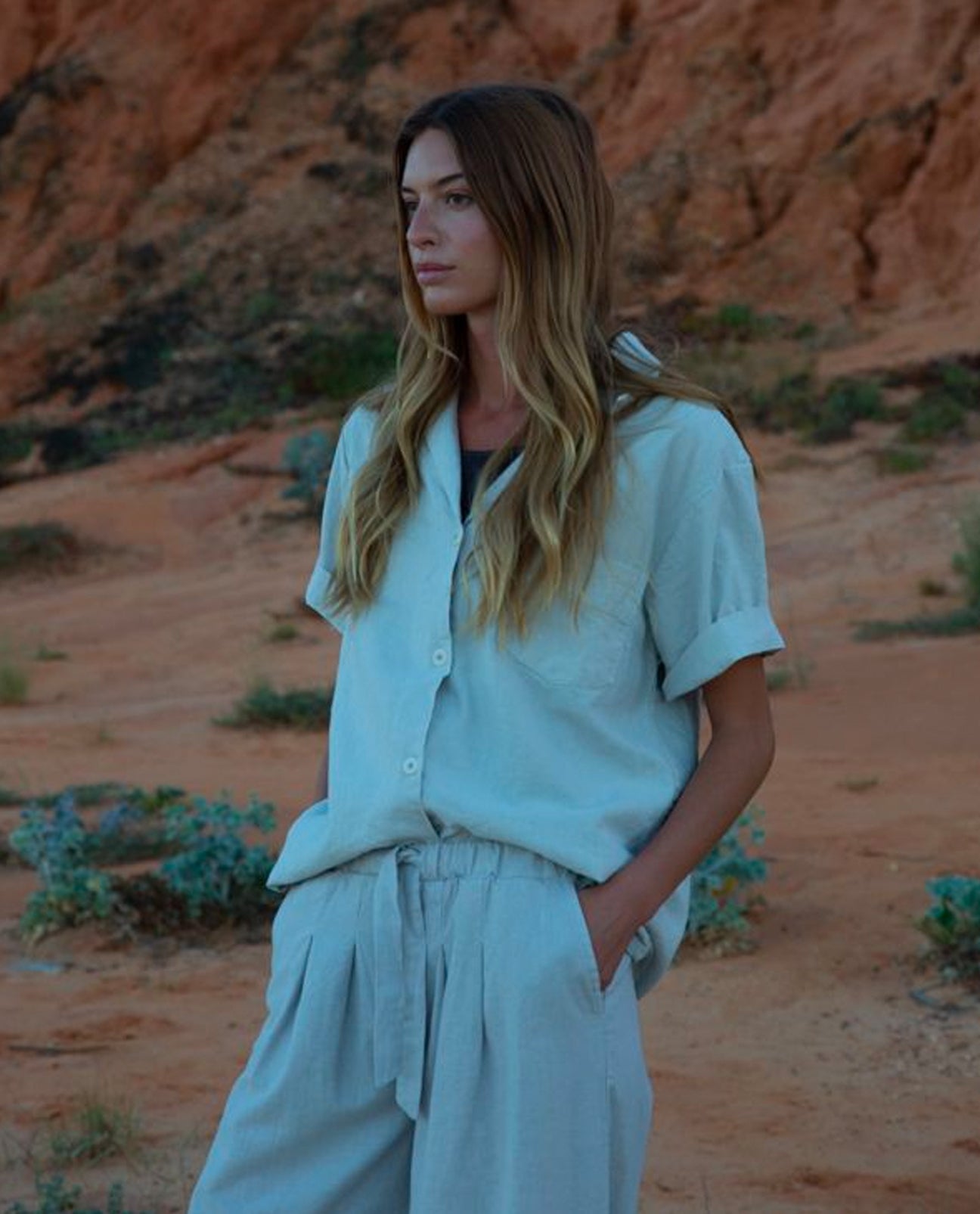 The Frida-May shirt features a masculine cut and is crafted from our premium weight cotton/linen blend fabric. Featuring a cuban neckline and front pocket.