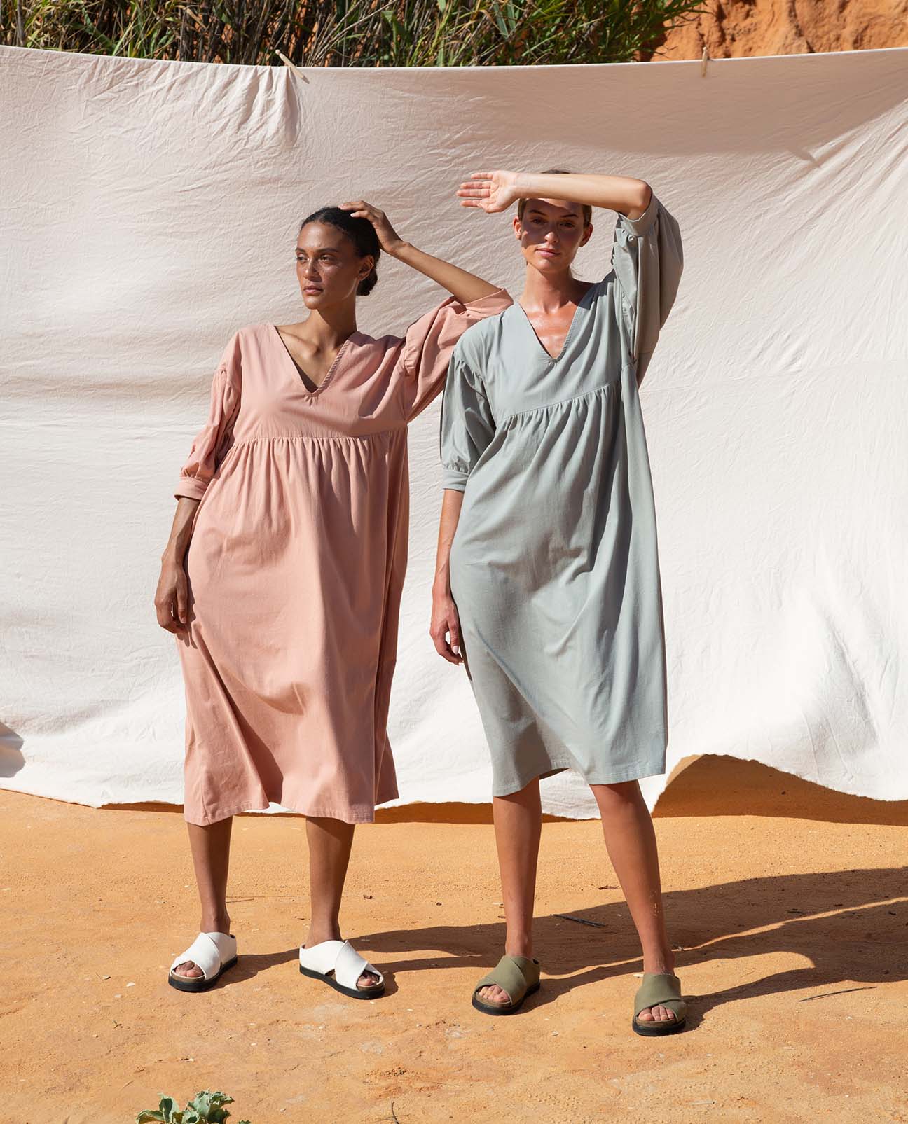 The Maeve is a new style for SS23. An elegant midi style dress with softly gathered sleeves, seam detail on chest and v-neck at front. Pockets at side seams.