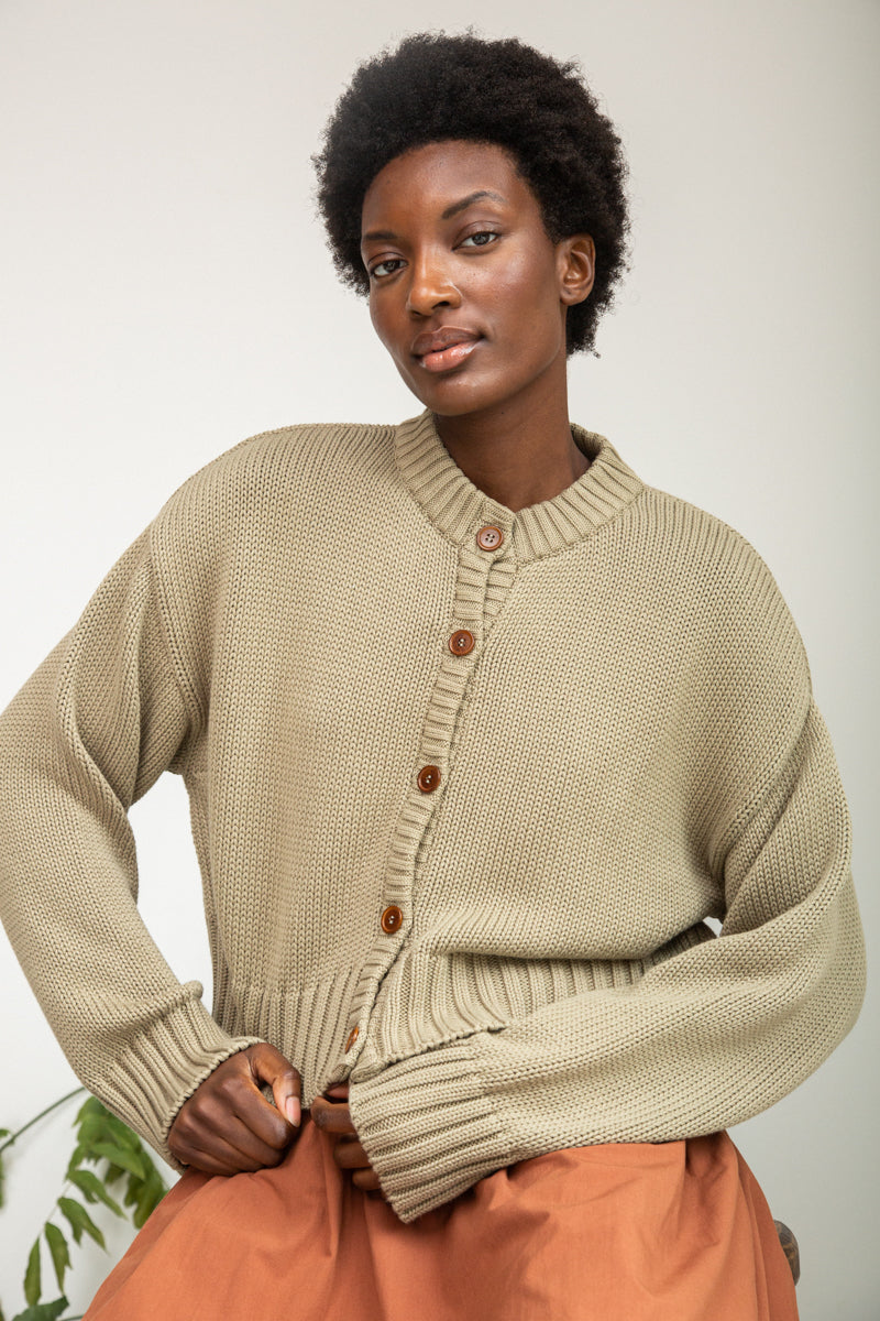 Sugi Organic Cotton Cardigan in Taupe