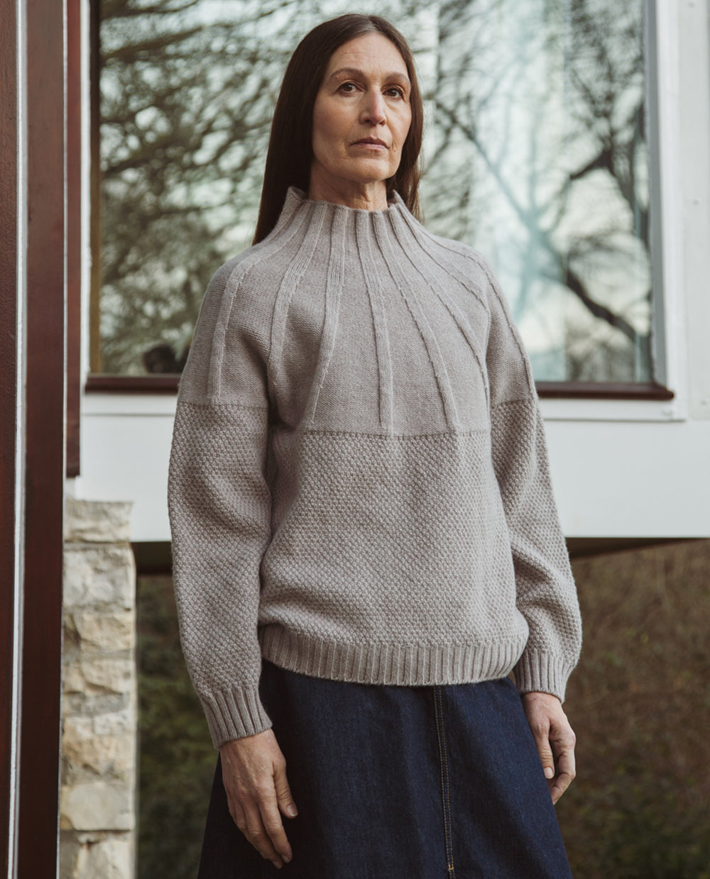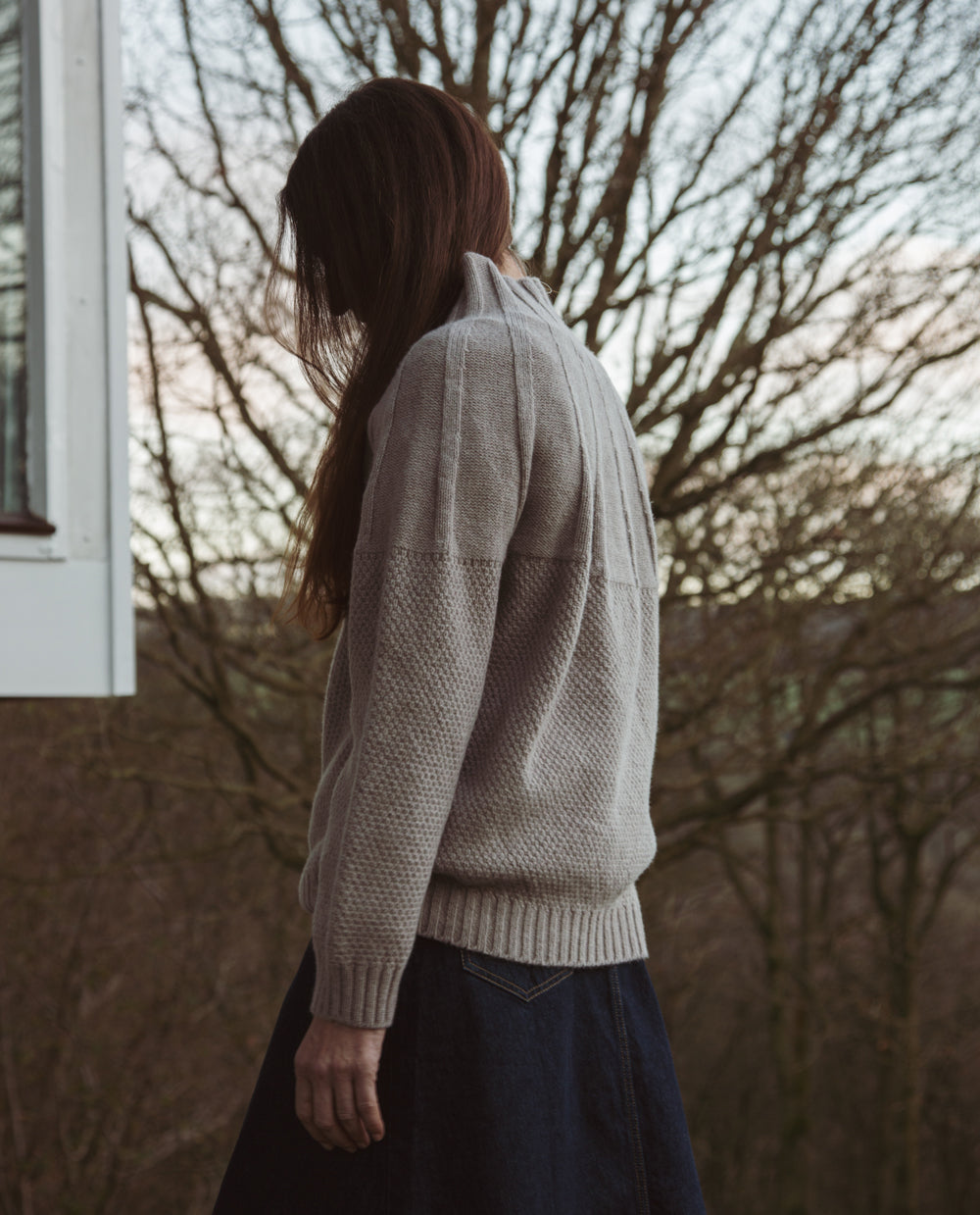 Made from a superfine lambswool, the Blanche is a luxuriously soft jumper with a thin twist detailing at the front and back. Featuring a funnel neck, balloon sleeves, and ribbed detail on cuffs and hem.